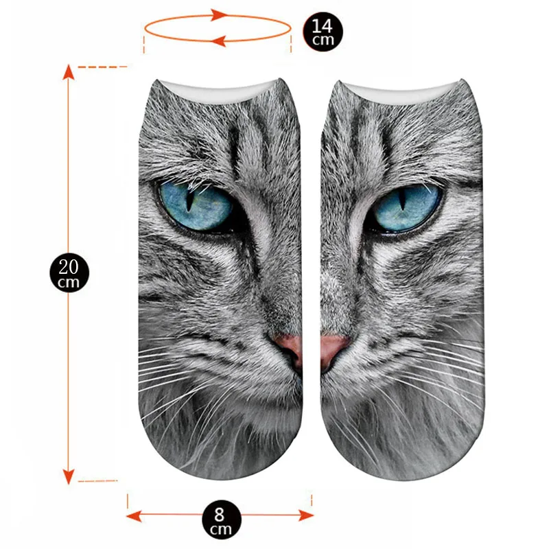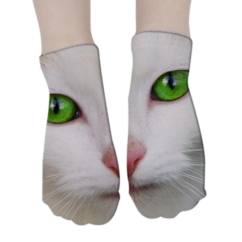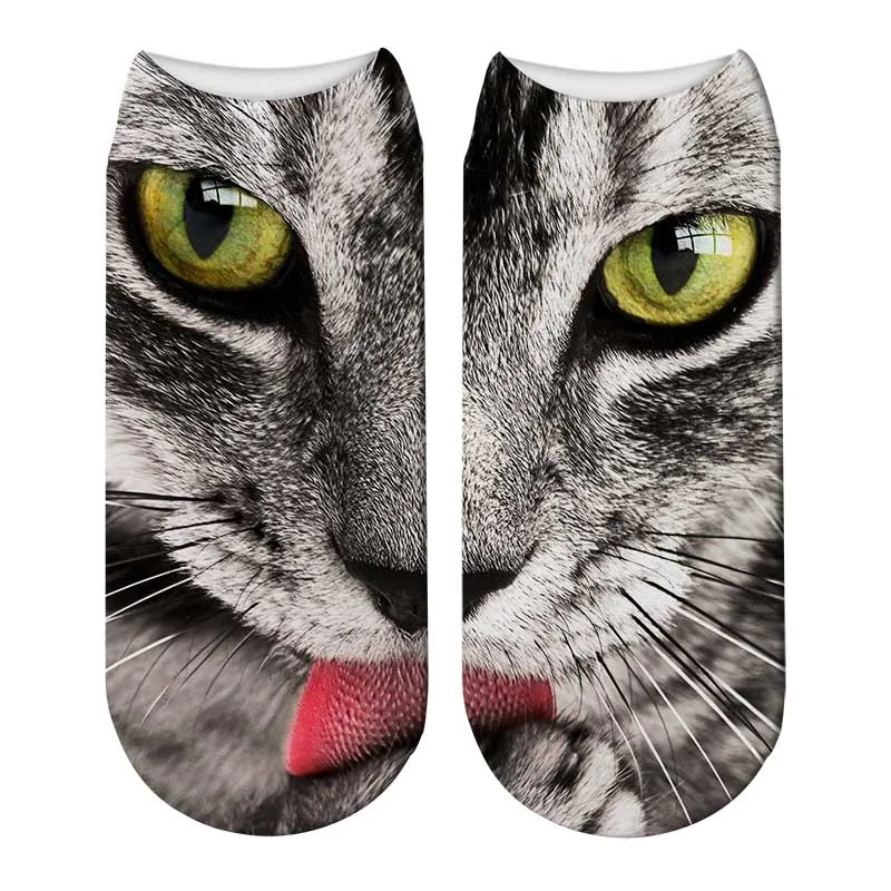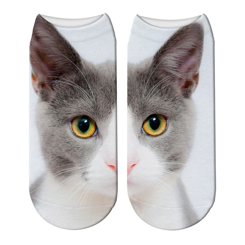 Носки мужские короткие с 3D принтом, модные смешные, с мультяшным принтом кота, короткие, без шоу