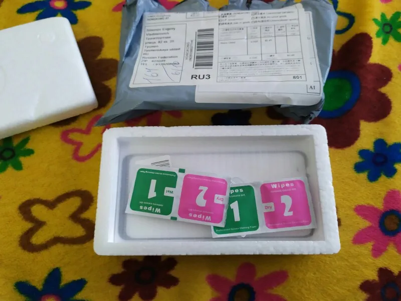 Упаковано хорошо, пришло всё в целости. На стекле уже были небольшие царапины, но при использовании они, в принципе, незаметны. Салфетки в комплекте не очень хорошо чистят поверхность телефона, остаются разводы. В целом, стекло неплохое. Правда, скорее всего, под стекло над камерой будет попадать пыль.