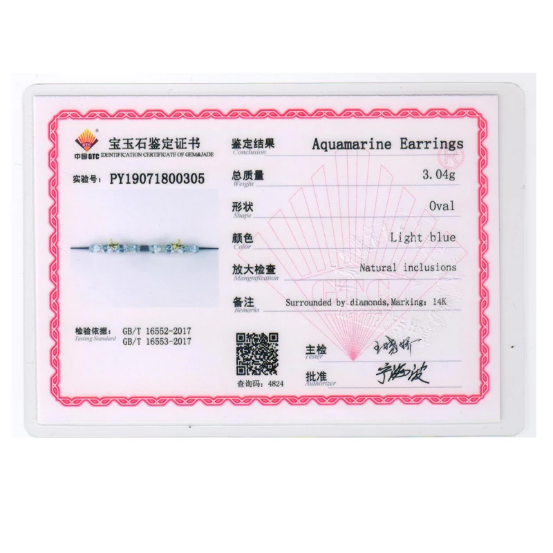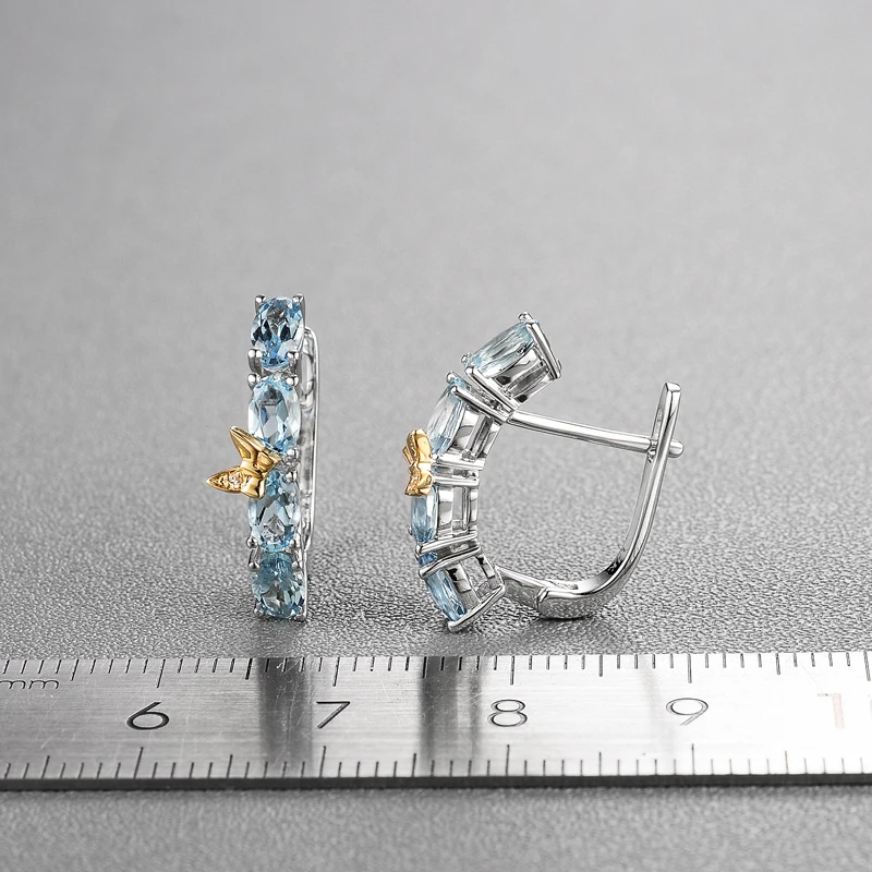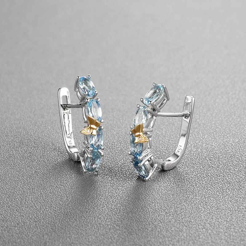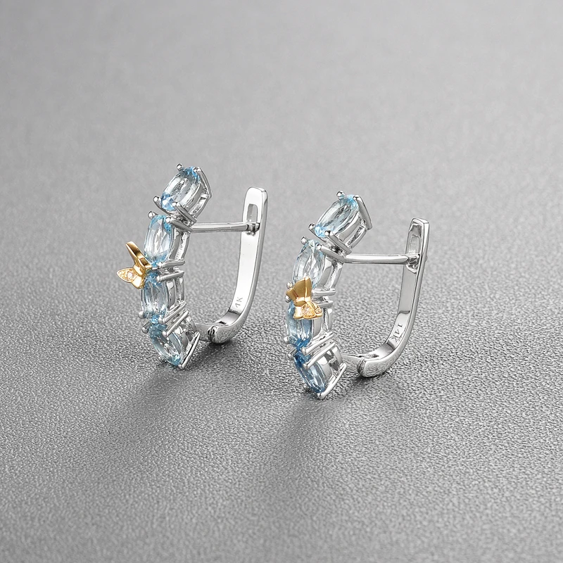 Серьги из белого золота с застежкой, ювелирные украшения для девочек с натуральными аквамаринами и натуральными бриллиантами стрекозами, 14 к
