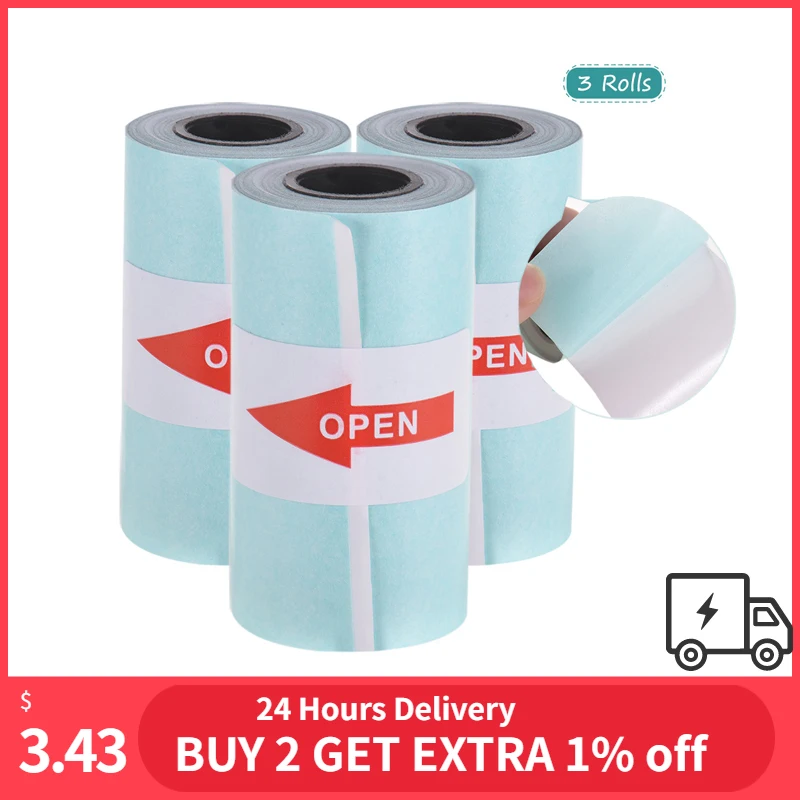 3 рулона фотобумаги, термобумага с самоклеящейся поверхностью 57*30 мм для карманной термобумаги PeriPage A6
