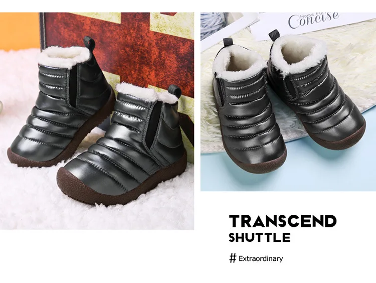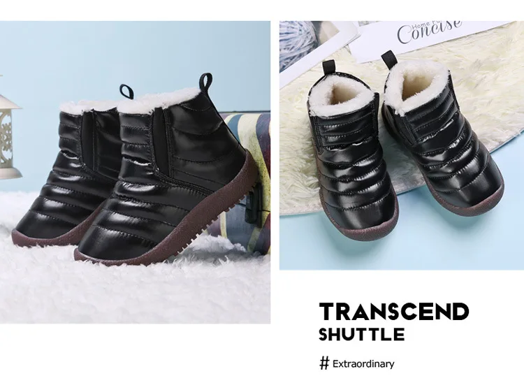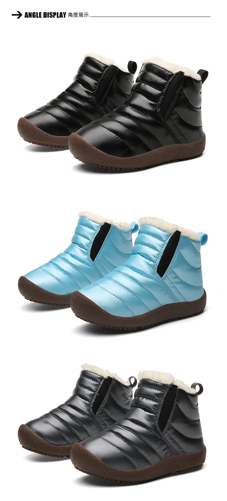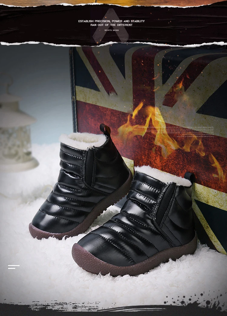 Водонепроницаемые ботинки для мальчиков и девочек, теплые плюшевые ...