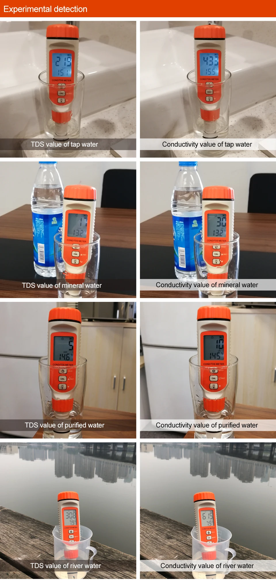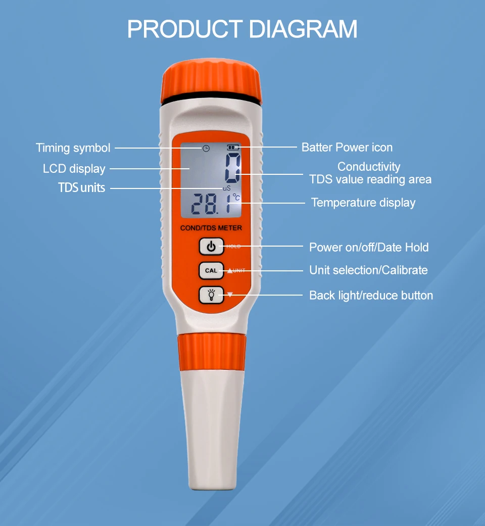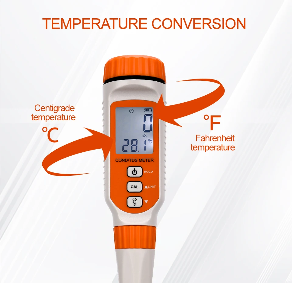 1. Тест COND (проводимость) / TDS (полное растворенное твердое вещество) уровень и температура (℃/℉) воды.