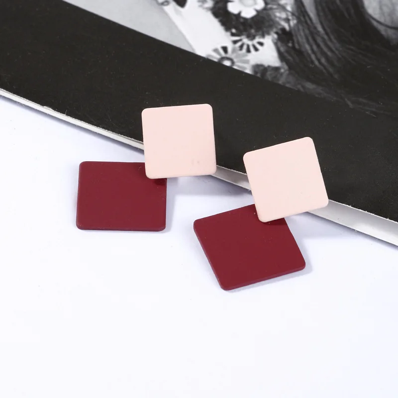 Серьги женские, квадратные, в Корейском стиле, ярко-красные