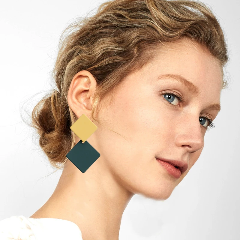 Type 2Korea Elegant Geometric Square 2 color Dangle Earring