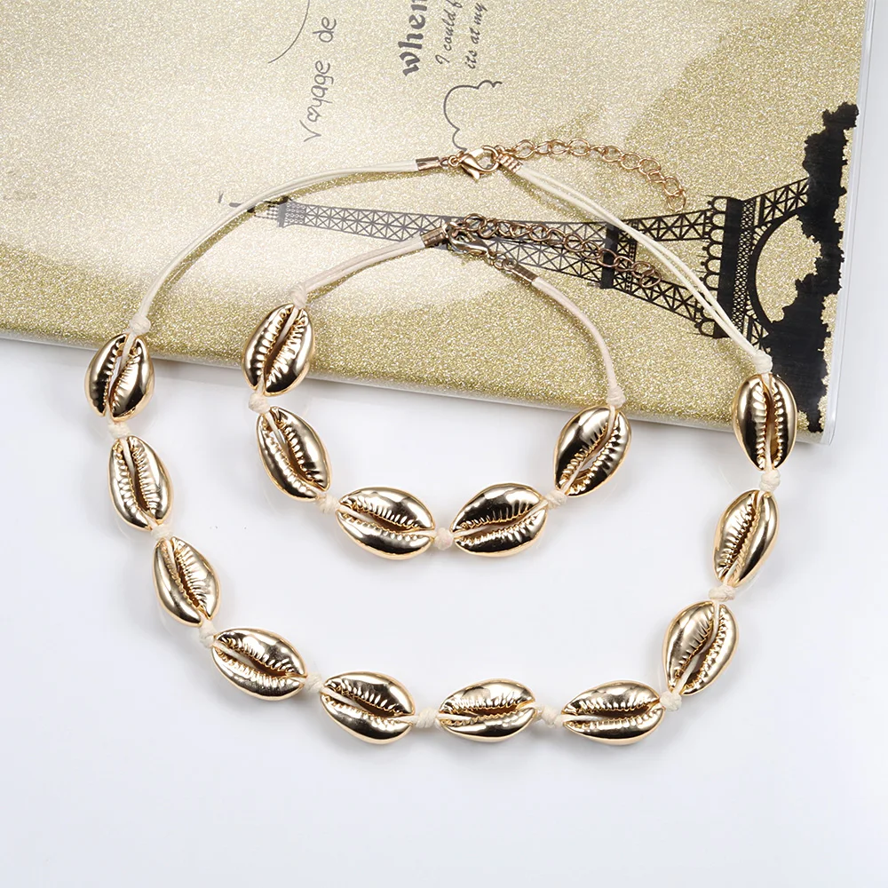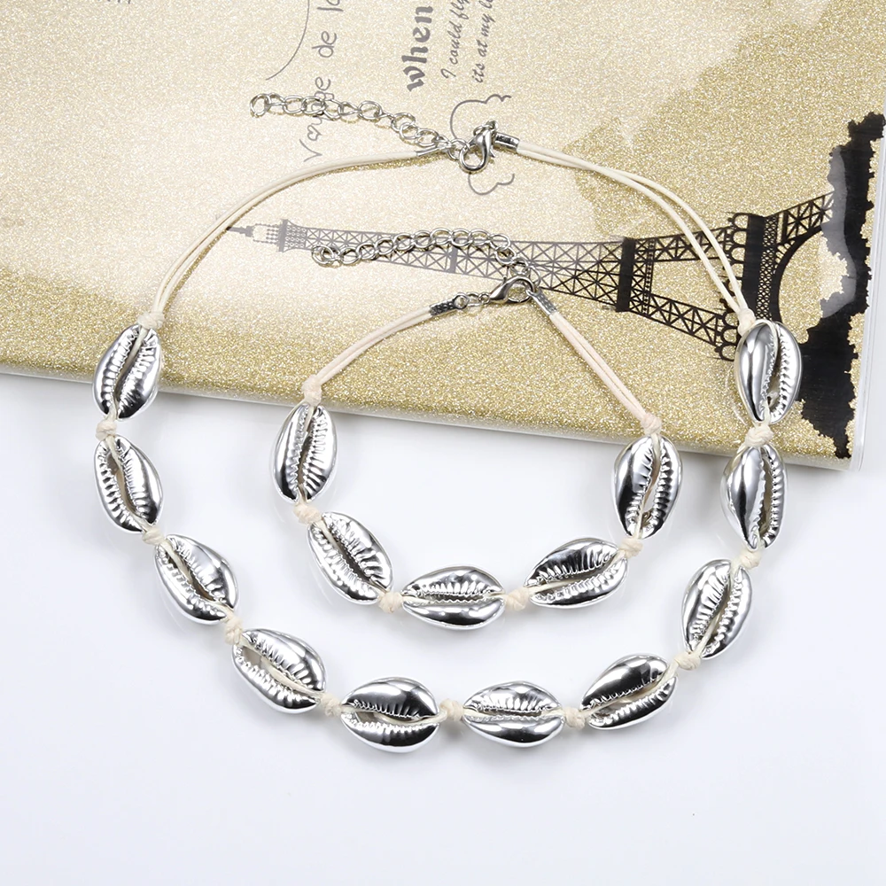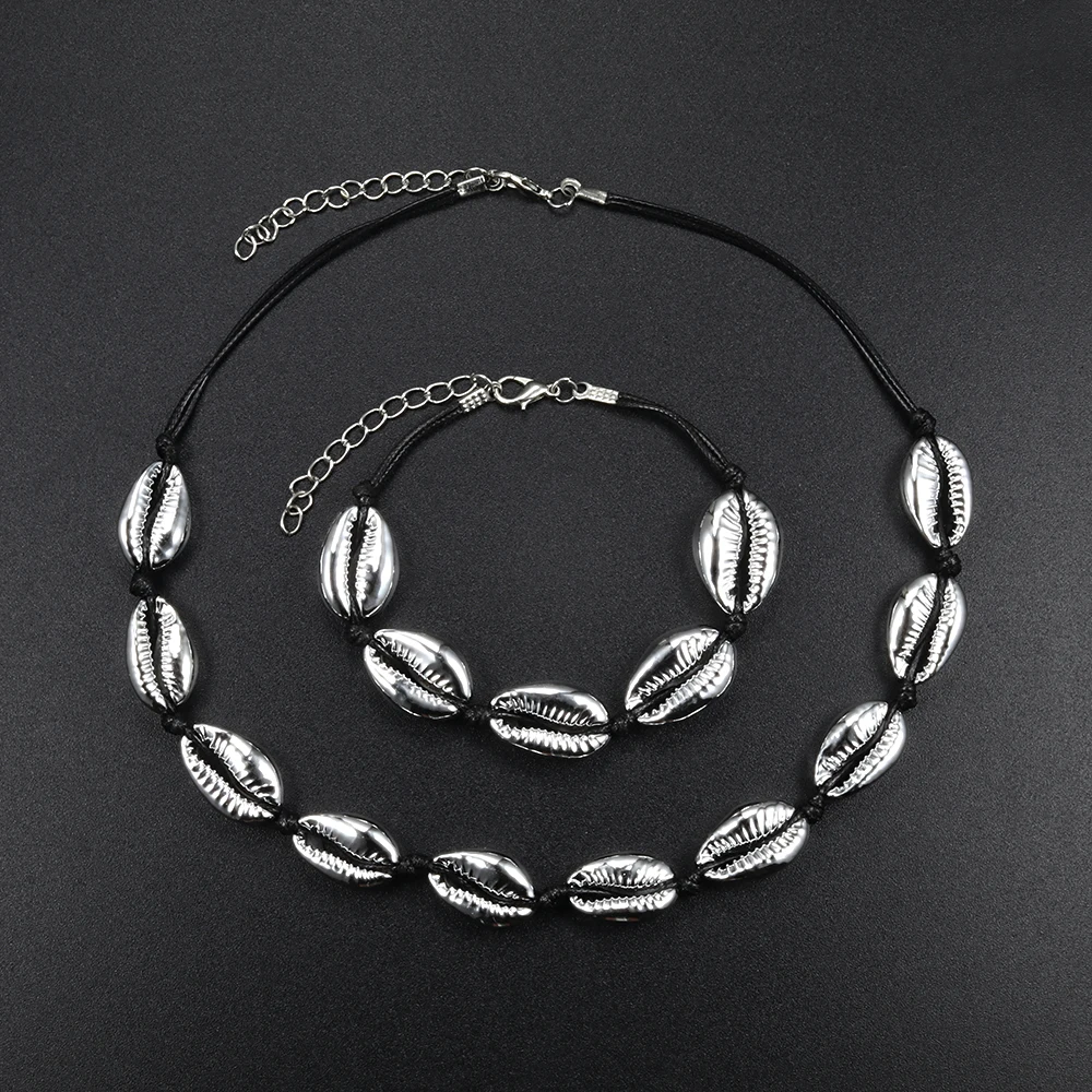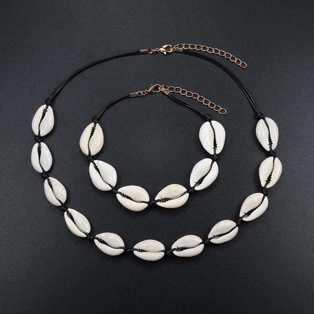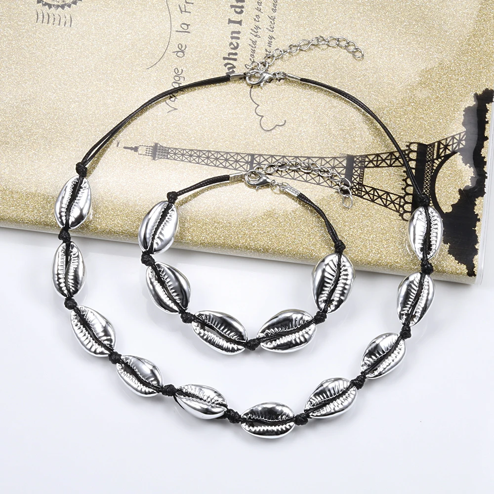 2 шт.компл. Boho женское ожерелье из ракушечника браслет Набор Натуральных ракушек цепь девушка чокер Браслеты регулируемые ювелирные изделия подарок