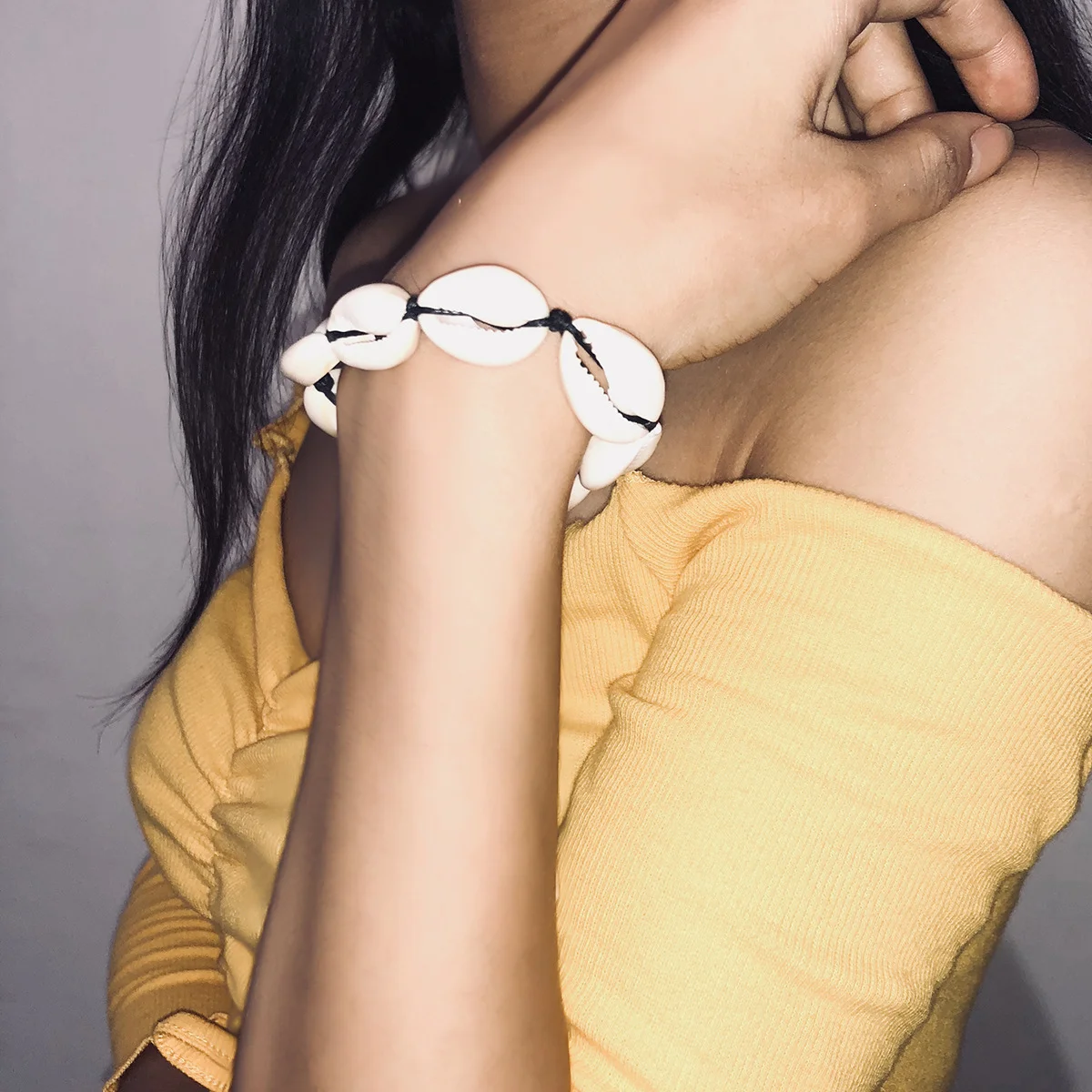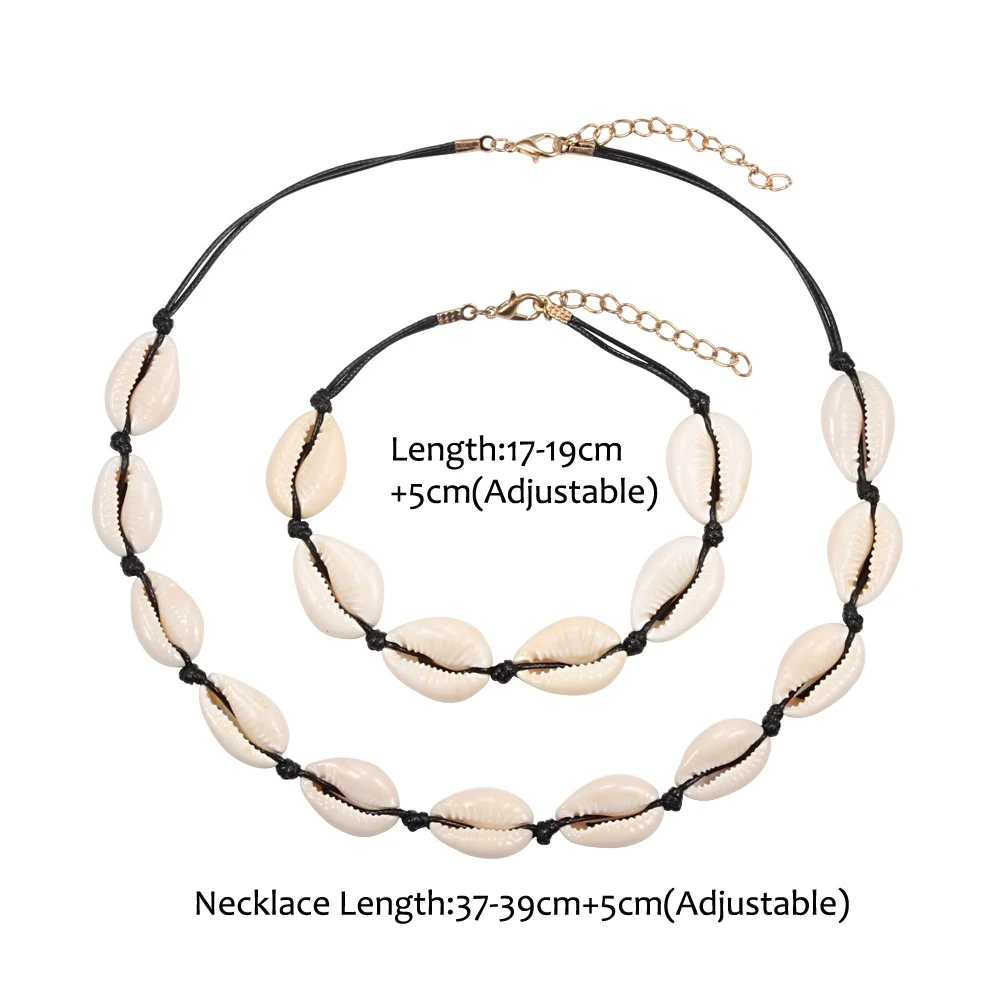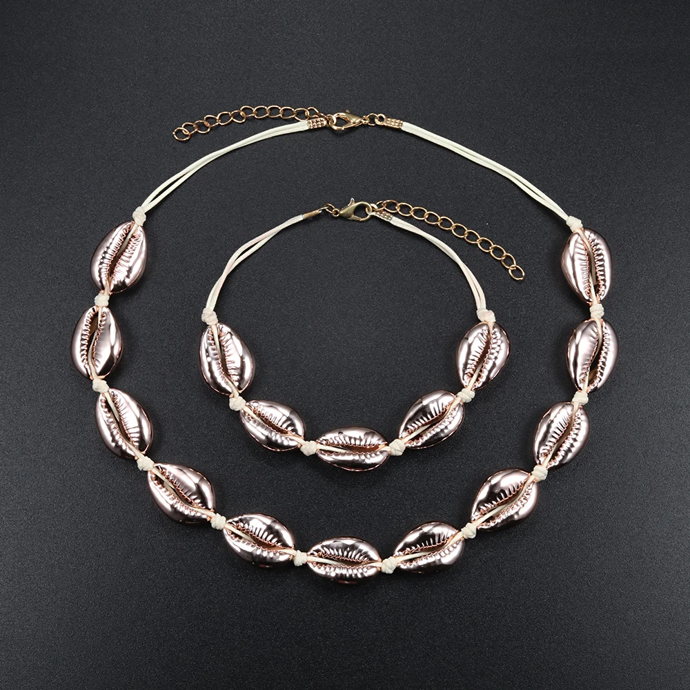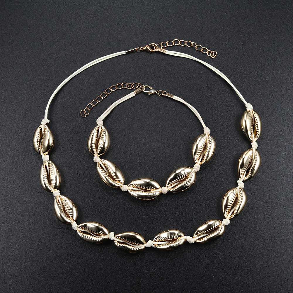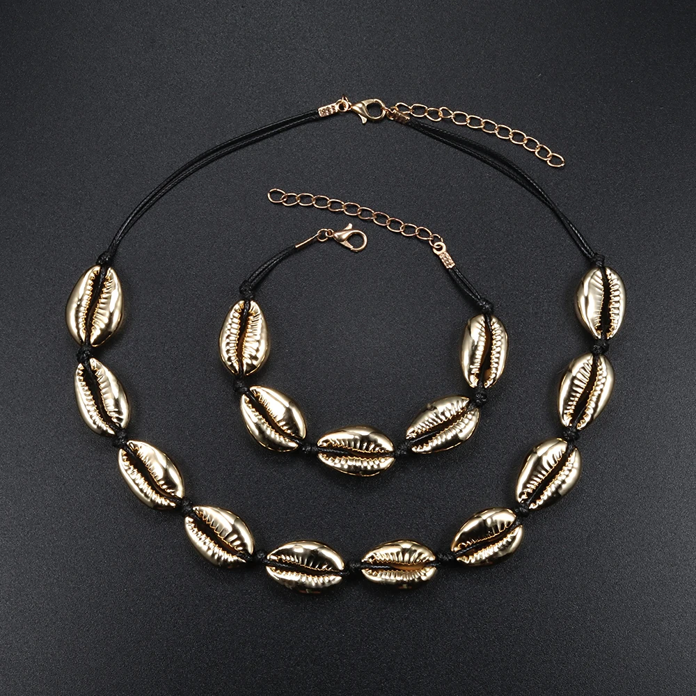 2 шт.компл. Boho женское ожерелье из ракушечника браслет Набор Натуральных ракушек цепь девушка чокер Браслеты регулируемые ювелирные изделия подарок