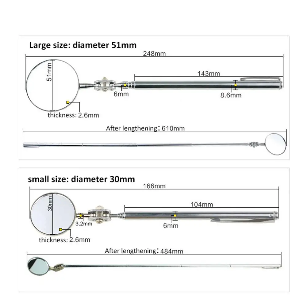 Зеркало для технического обслуживания автомобиля, универсальное складное телескопическое отражатель, сварочное шасси, инспекционное зеркало, инструмент для проверки автомобиля