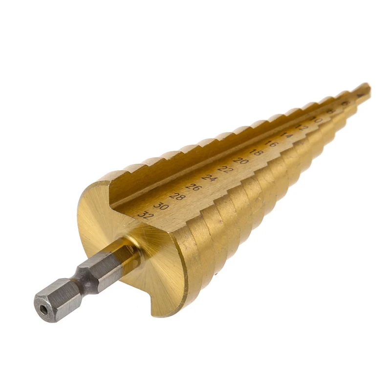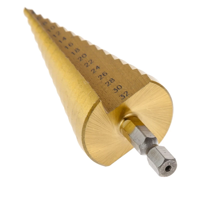 1 шт. 4-32 мм ступенчатое сверло из быстрорежущей стали с титановым покрытием Ступенчатое Коническое сверло для сверления древесины электроинструменты резак для отверстий ступенчатое Коническое сверло
