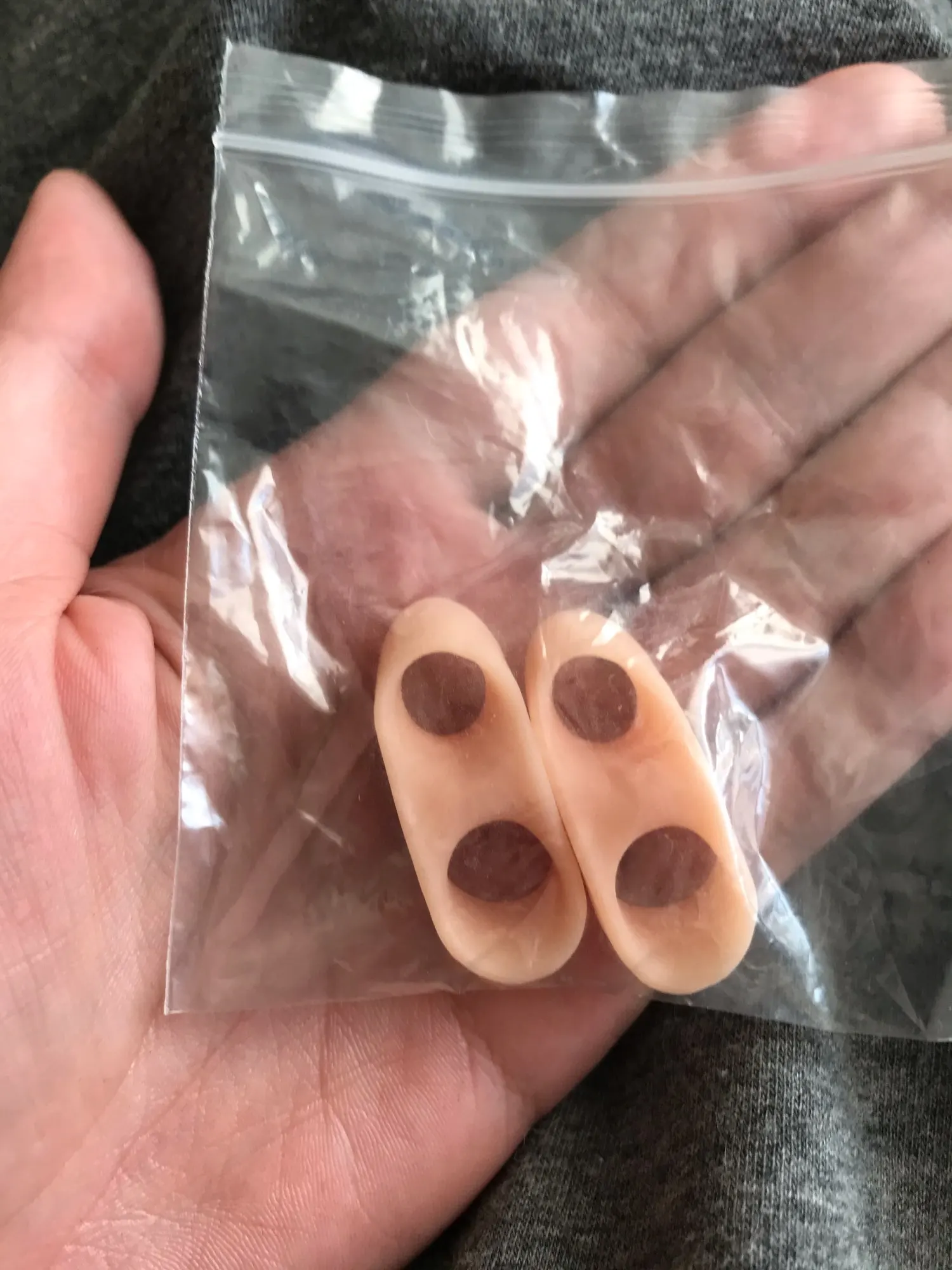 доставка быстрая. заказывала несколько позиций у этого продавца, очень приятно было получить подарочек-две пары этого разделителя для пальцев. силикон очень мягкий, запаха никакого нет.