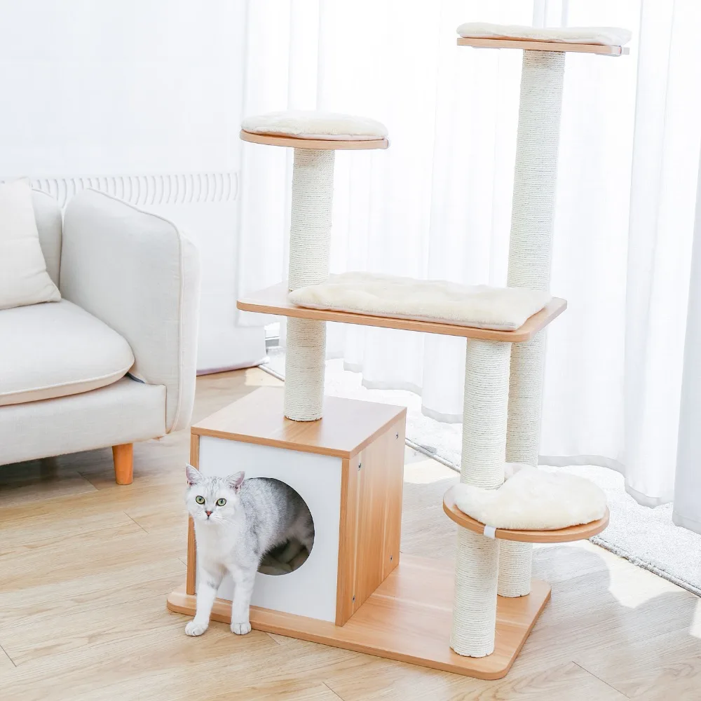·Многофункциональность: мягкое плюшевое одеяло и гнездо предлагают спокойное место, чтобы скручиваться для сна с чувством безопасности. Полностью завернутые натуральные сизальные столбы и пандус обеспечивают множество площадей для ваших кошачьих друзей, чтобы затачивать ногти и отпускать естественные инстинкты.