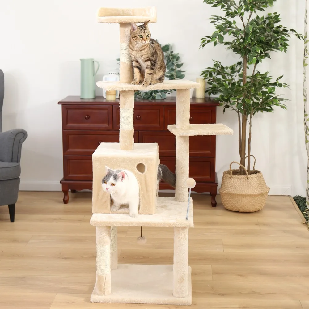 ·Роскошный стиль-это бежевое кошачье дерево, уникальное и роскошное, хорошо соответствует стилю современного дома. Идеально подходит для использования во все сезоны. Не только рай для кошек, но и красивое украшение дома.