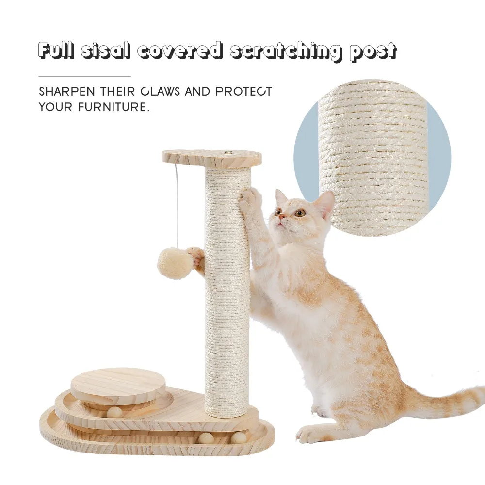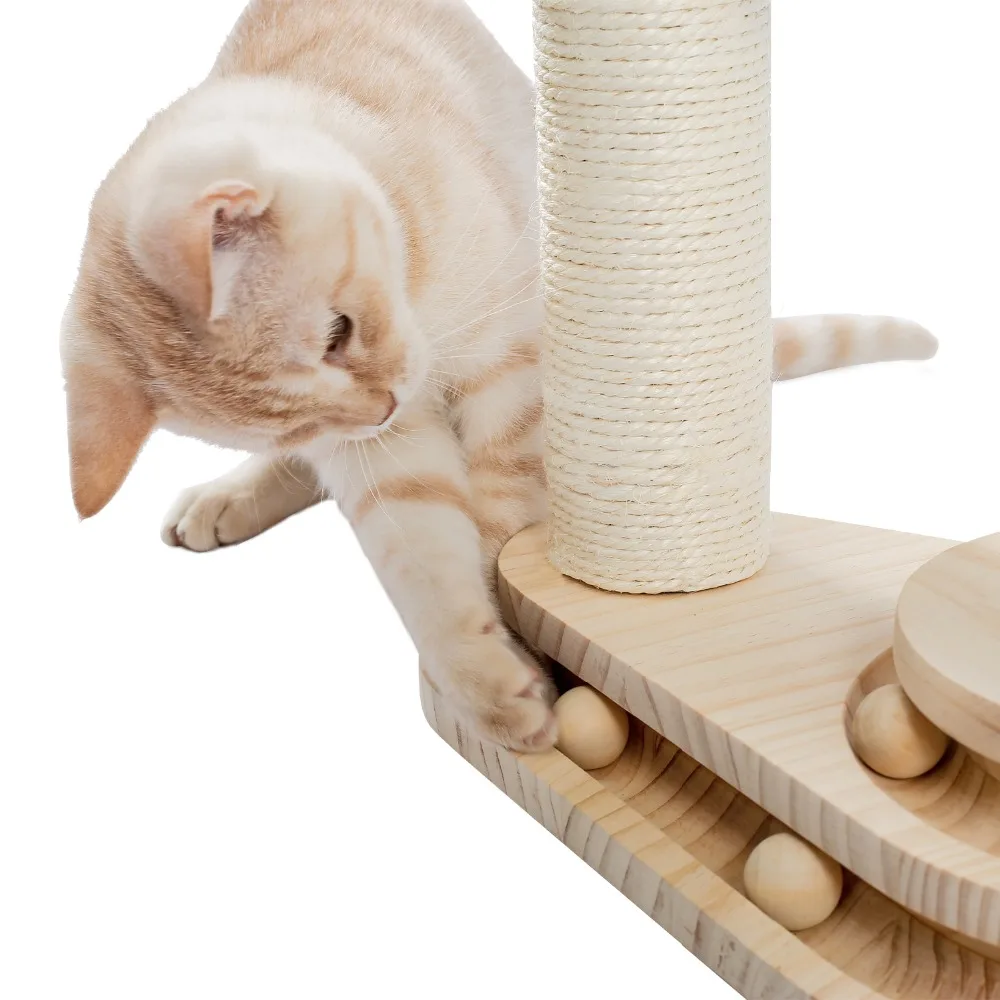 Отличный игровой партнер для кошек: с висячим мячом, полностью покрытым сизалем когтеточком и маленьким деревянным шариком для взаимодействия, эти когтеточки для кошек обеспечивают множество развлечений для ваших милашек. Просто подарите своему маленькому тигру приятного игрового партнера.