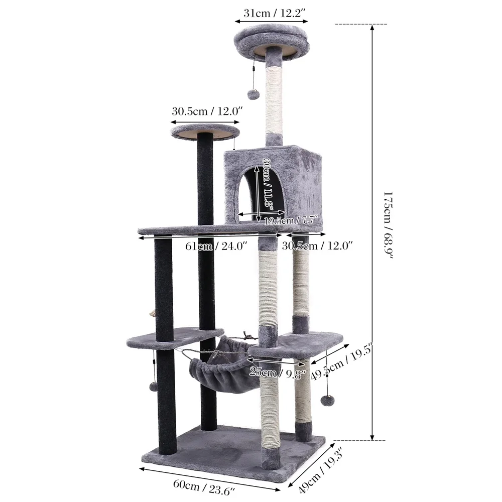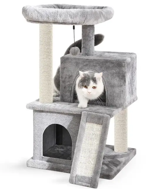 ·Средние кошачье дерево-Размеры: 70*45*115 см (27,6 "* 17,7" * 45,36 "), дом: 35*34*34 см. Подходит для большинства кошек, включая толстые.