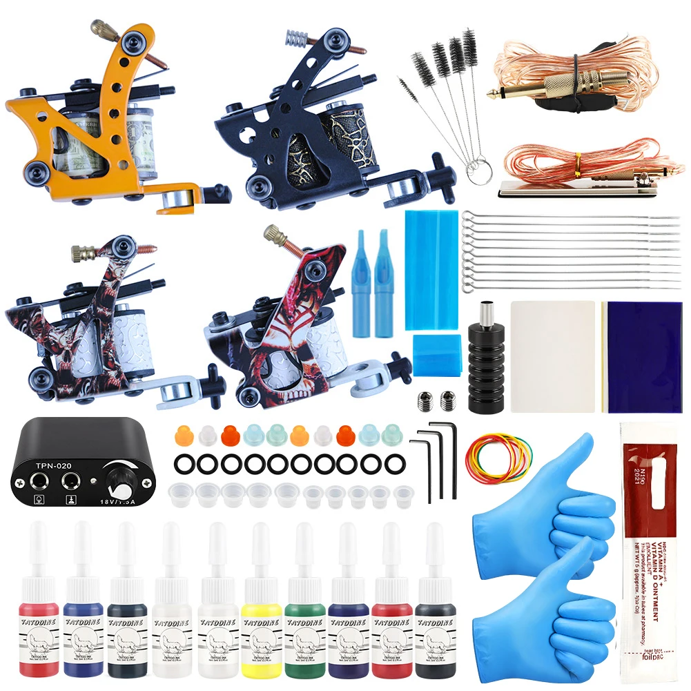 ● 4 X топ тату машина для подкладки и затенения/2 X топ тату машина для подкладки и затенения● 1 X Высококачественная мини-система питания, ножной переключатель и зажим● 6 X бутылка чернил для тату + 4 подарочных чернил/6 X бутылка чернил для татуировки● 10 X Высокое качество предварительно сделанные стерильные иглы татуировки● 1 X Высококачественная ручка для тату-машины● 10 одноразовых наконечников (5F1,5Rt)● 10 чашек для тату● 10 X втулка держит иглу устойчивой● 10 X резиновых полос Avoide машина● 10 X уплотнительное кольцо уверенная гладкая пружина● 3 X набор инструментов регулировки для машины● 1 X крышка машины и 1 шт крышка шнура зажима● 1 крем после ухода● Перчатки-1 шт.● 1 X тренировочная кожа и 1Pc переводная бумага● Набор чистящих кистей-1 шт.