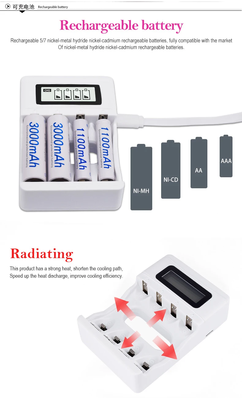 Умное зарядное устройство с 4 слотами, ЖК-дисплей, 1,2 В, AA, AAA б...