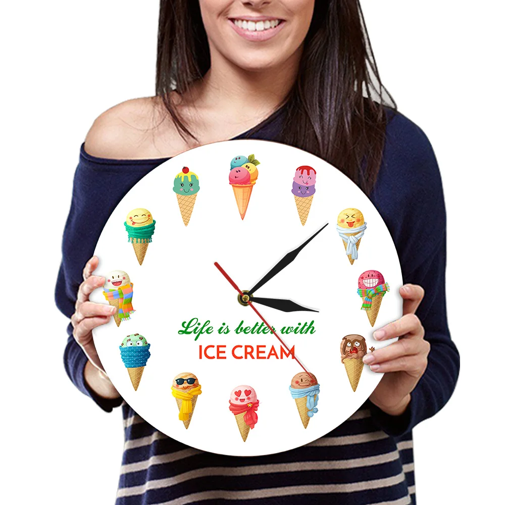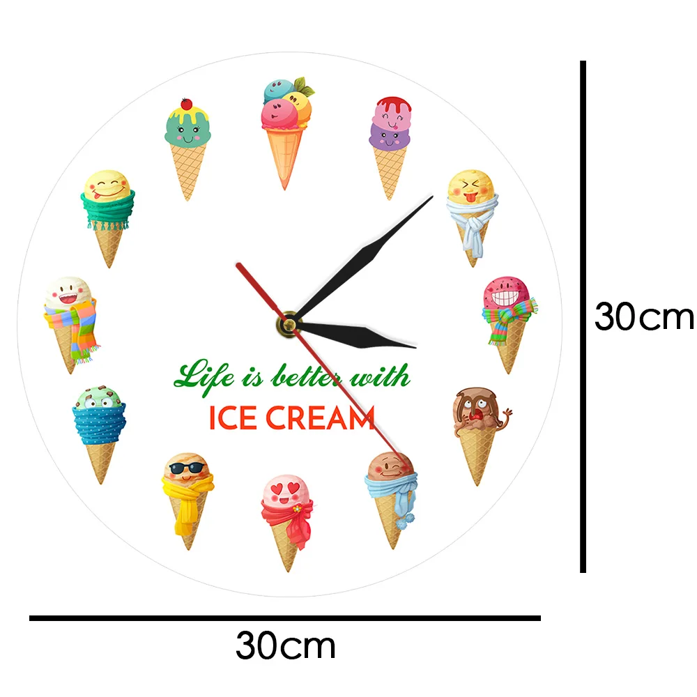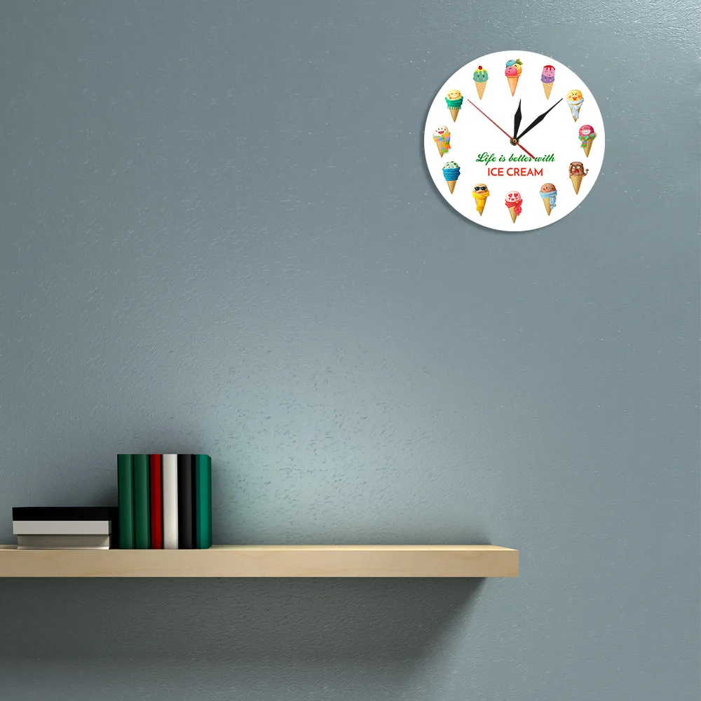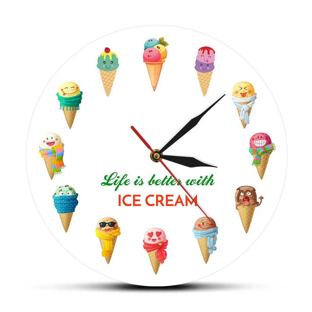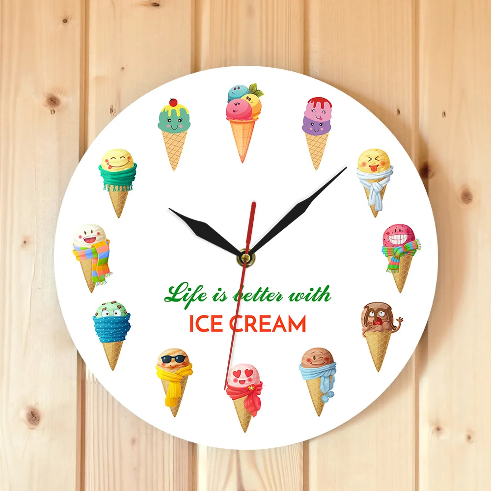 Life is better with ICE Cream Time Clock прекрасный мультяшный дизайн мороженого пудинг магазин десертов кухонный декор настенные часы