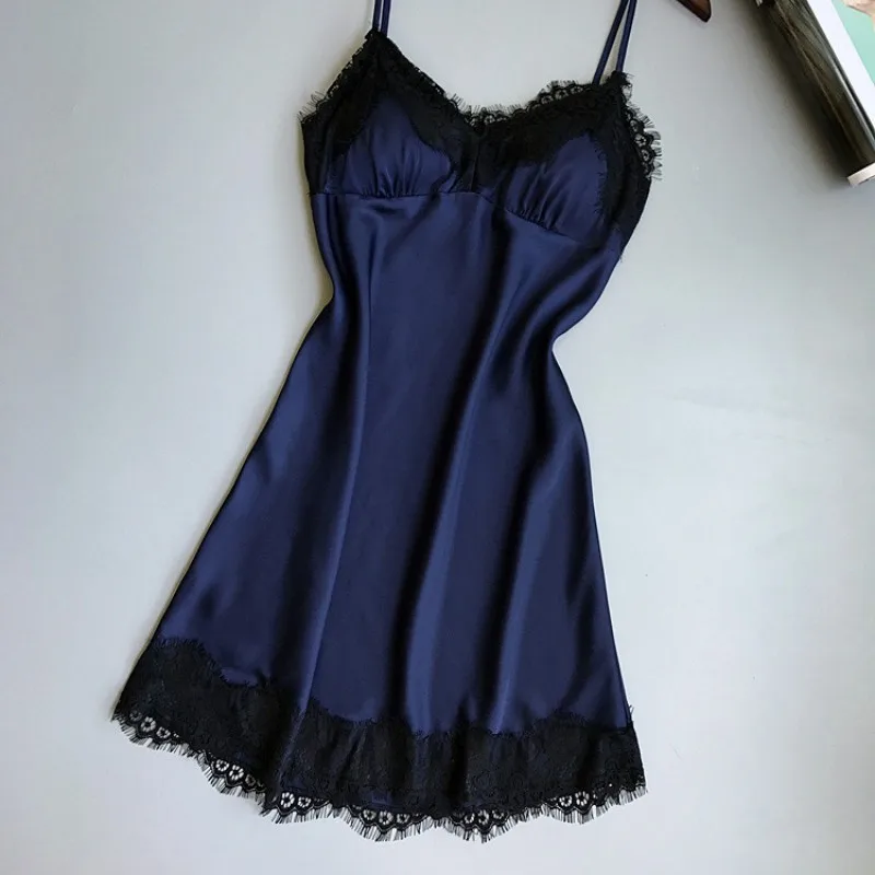 Нижнее белье шелковая ночная рубашка летнее платье кружевное Ночное Платье ночная рубашка атласная Домашняя одежда нагрудная подкладка ночное белье