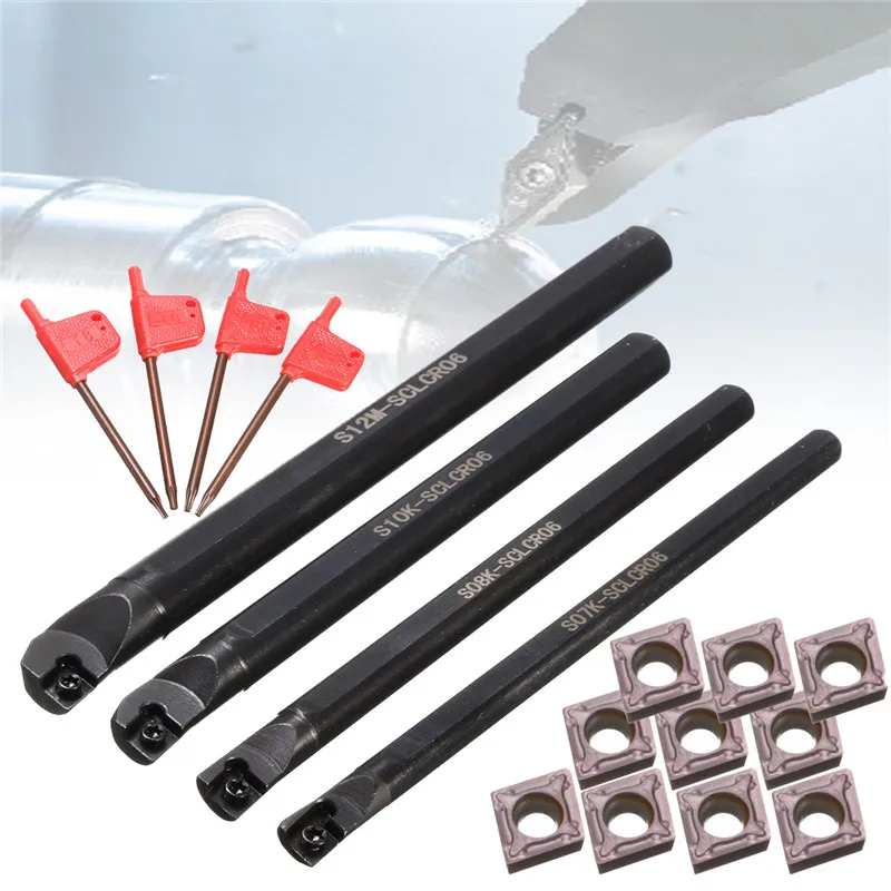 Держатель инструмента для токарного станка SCLCR, 781012 мм + 10 вставок CCMT 0602, Набор держателей для токарного инструмента