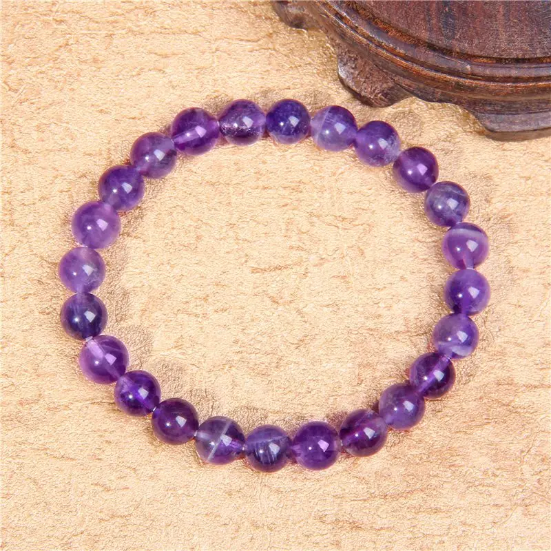 Женский натуральный камень аметист бусы браслет для женщин мужчин Простой Фиолетовый кварцевый кристалл браслеты ювелирные изделия для женщин оптом