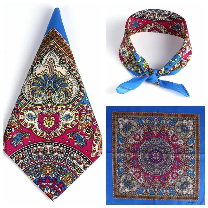 Этнический стиль, женский, мужской, Панк Хип-хоп бандана яркий цветной Пейсли Цветочный Принт, квадратный шарф для велоспорта, танцев, повязка на голову
