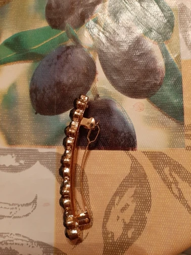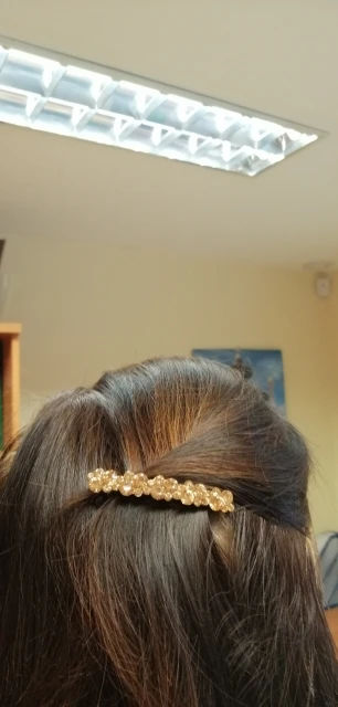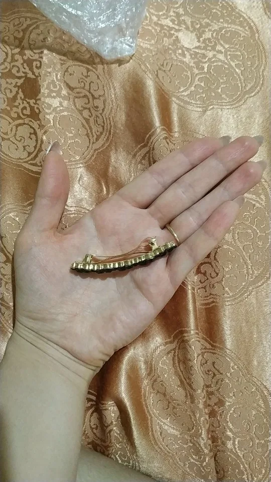 Заколка красивая. Заказывала золотистую, наверное лучше было заказать другого цвета, т.к. у золотистой из-за ее медного цвета, блеск только на солнце или при свете виден, немного тусклая, думаю серебристая смотрелась бы ярче. Заколка маленькая, не удержит цельный хвостик даже самых тонких волос, ее можно использовать только в прическах. Я использую заколку, чтобы заколоть прядь волос сверху, когда остальные волосы распущенные. Доставка быстрая. 2 Недели до Екатеринбурга.