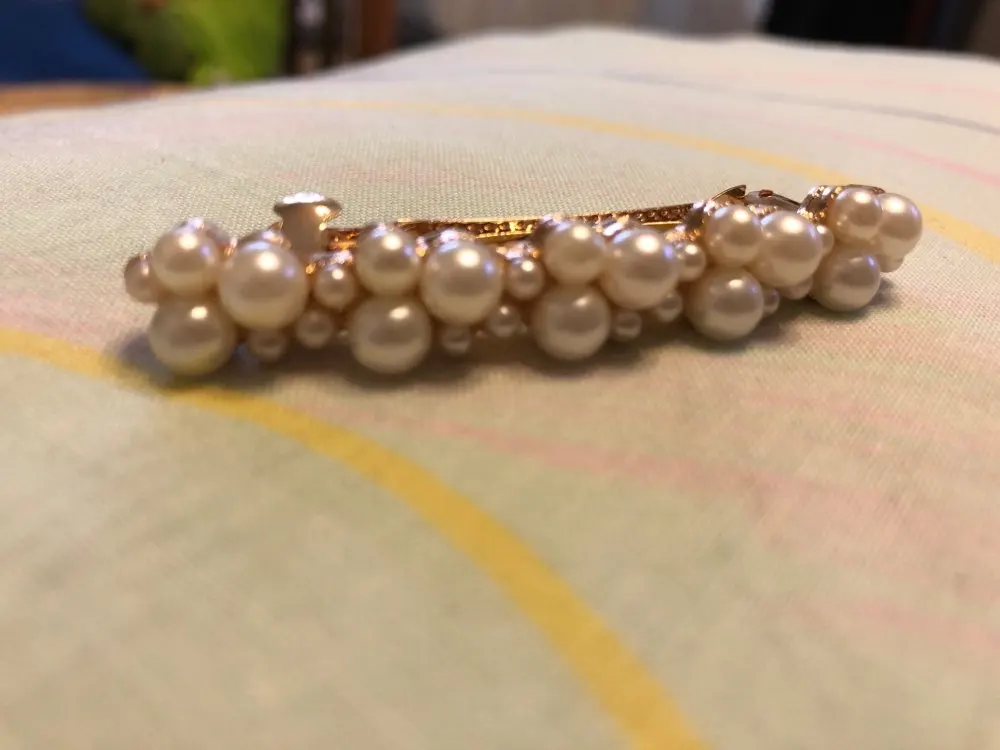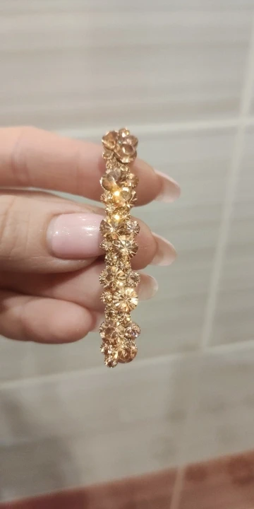 Красивая, как на фото, держится крепко на волосах, не расстегивается;) с продавцом не общалась