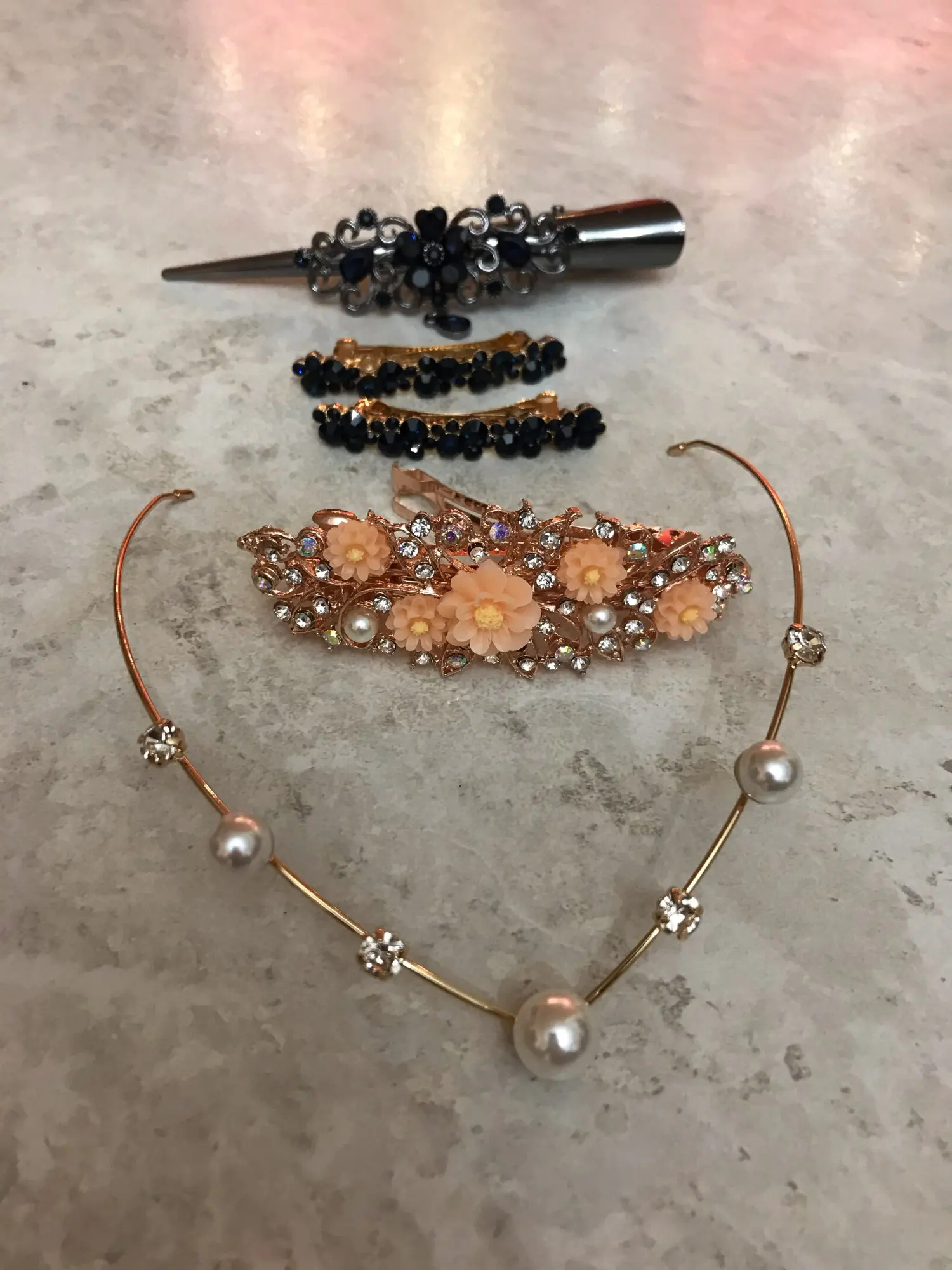 Заколки для волос женские, с кристаллами и жемчужинами, 5 цветов