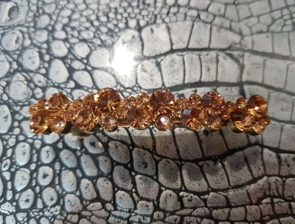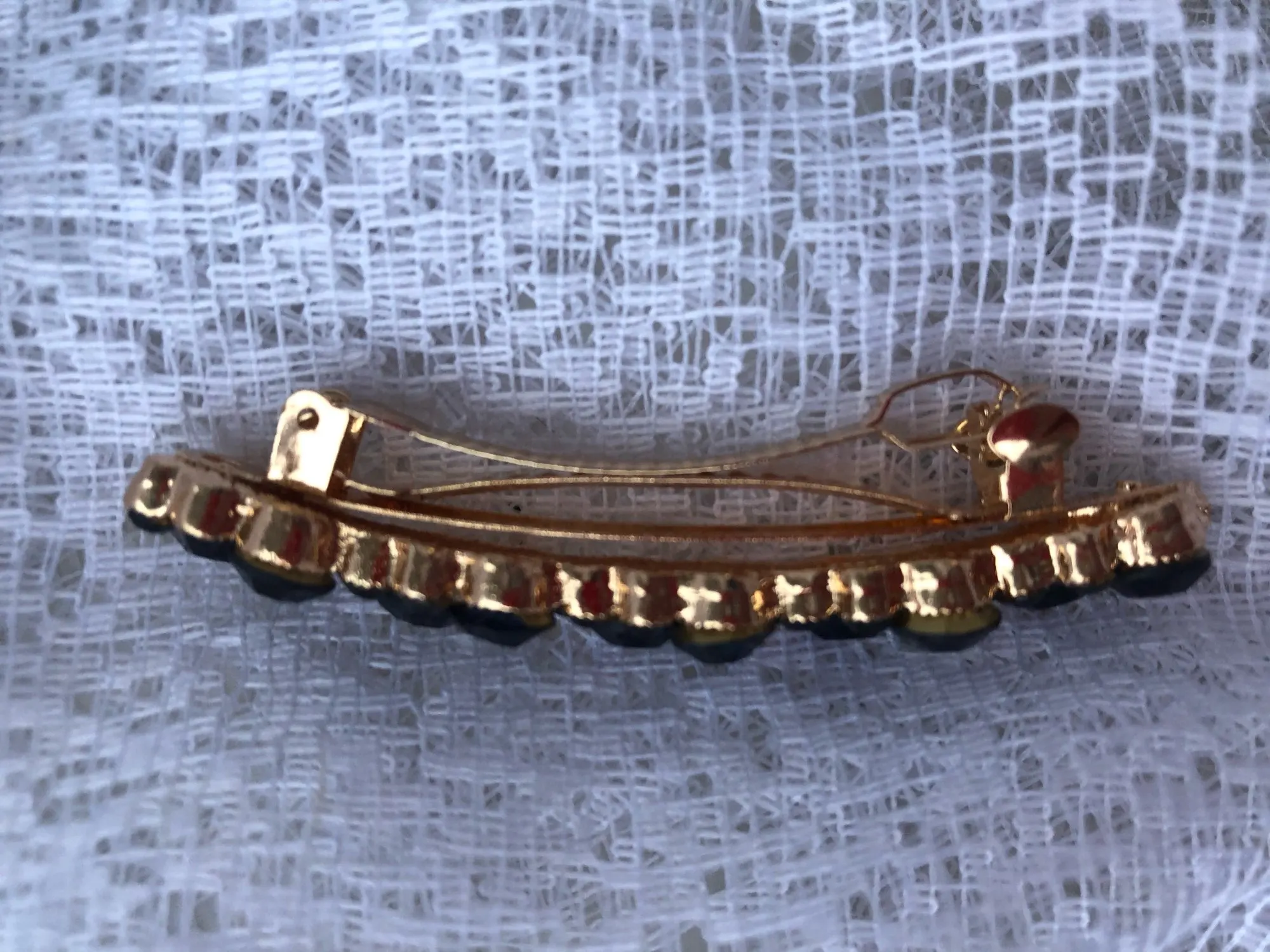 Крепкая хорошая заколка,камешки темно-фиолетовые.Не большая.