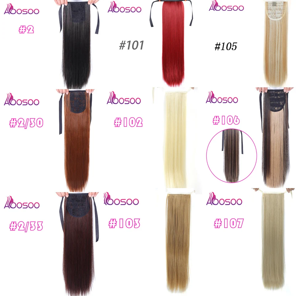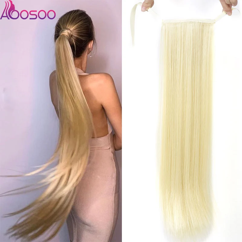 Длинный шелковистый прямой хвост на заколке, синтетический конский хвост, термостойкий накладной шиньон, 18-32 дюйма