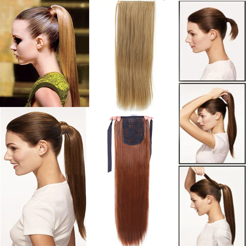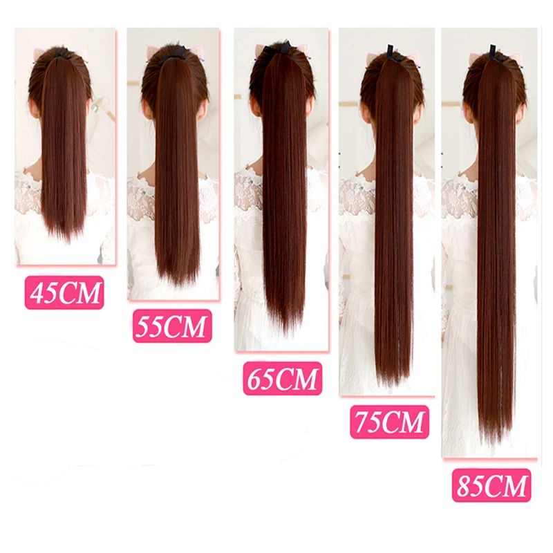 Длинные шелковистые прямые Конские хвосты на зажиме, синтетический конский хвост, термостойкие искусственные волосы для наращивания, круглая шиньон 30-32 дюйма