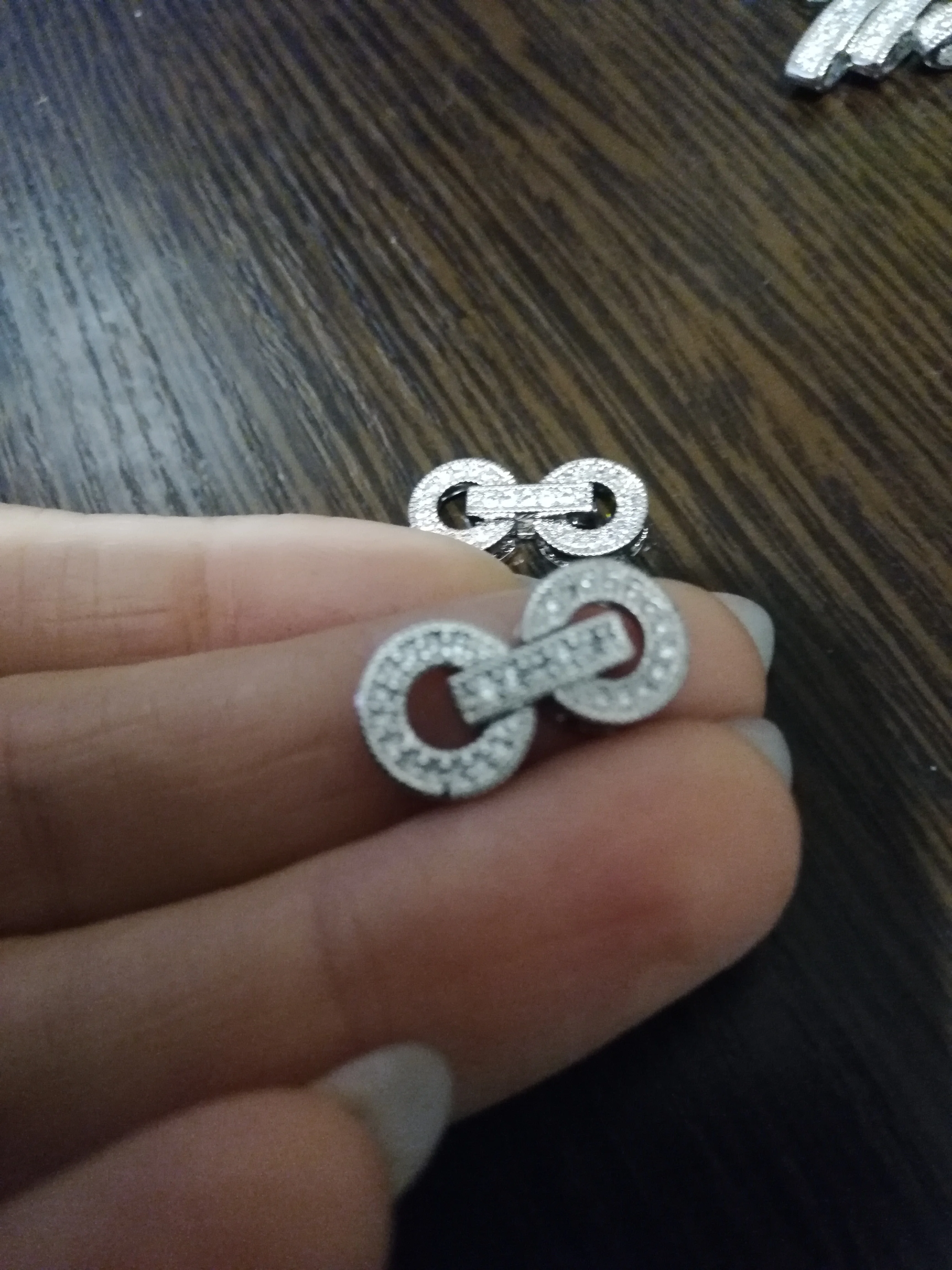 Отличные замочки,все как на картинке и в описании.Все церкончики на месте,камушки переливаются. Замочки равда туговаты,но после нескольких раз открытия все хорошо.Советую брать,очень достойно выглядят в украшении.
