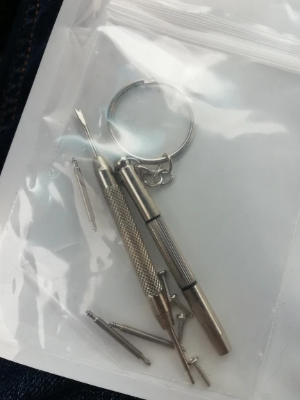 У меня уже был инструмент для установки ремешков с другого заказа, поэтому я попросил продавца вместо этого положить что-то другое, в итоге и на два ремешка два инструмента пришло и дополнительный ремень положили (заказывал чёрные, положили белый, он не очень смотрится, но на крайний случай сгодится, приятный бонус в любом случае). Теперь про сапи ремешки: либо пряжка маловата, либо ремень широкий получился, в общем затягивается туговато, считаю это минусом. Ещё будьте готовы, что ремешки плохо гнутся и первое время могут натирать, потом примут форму и будет норм.