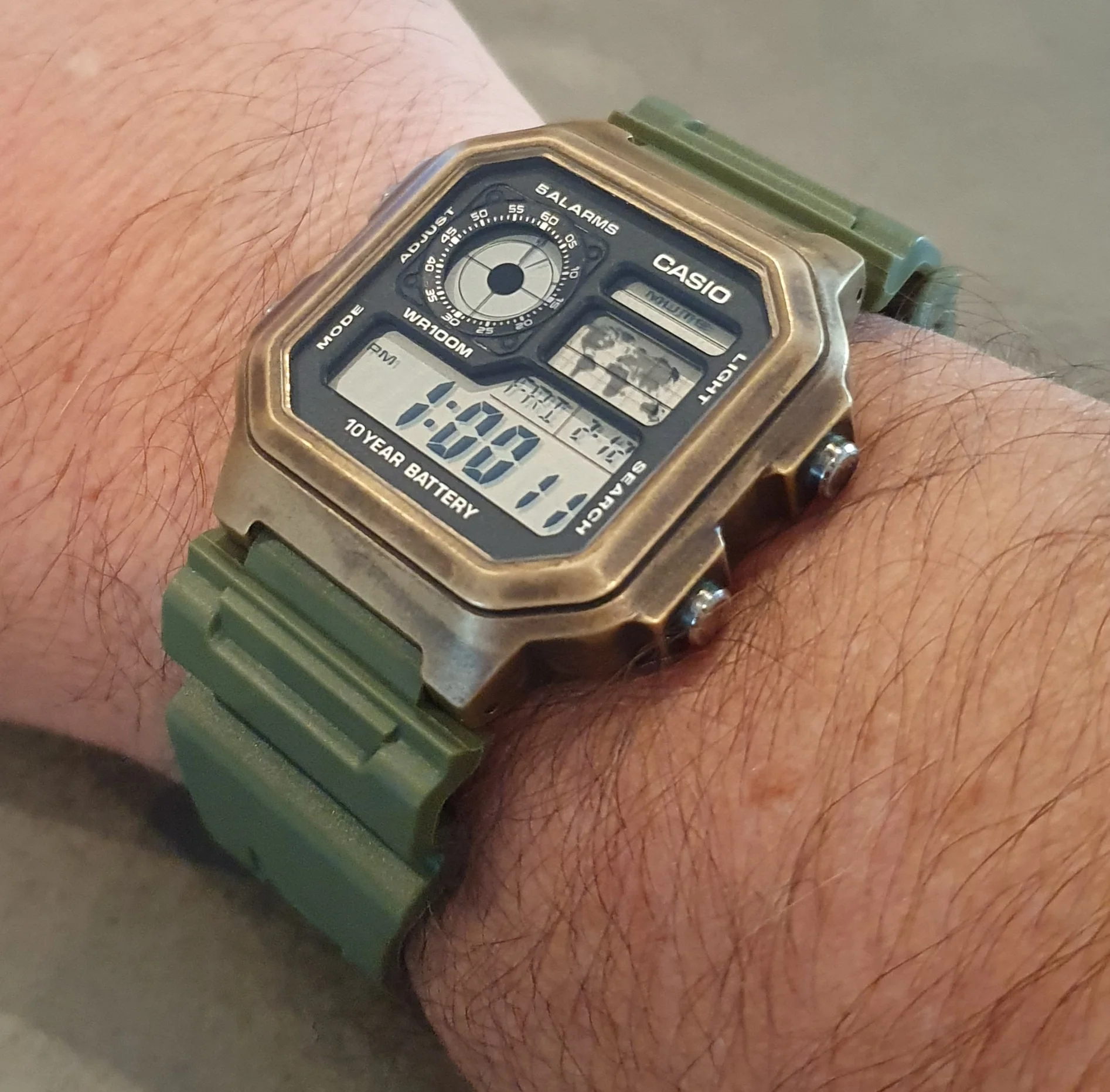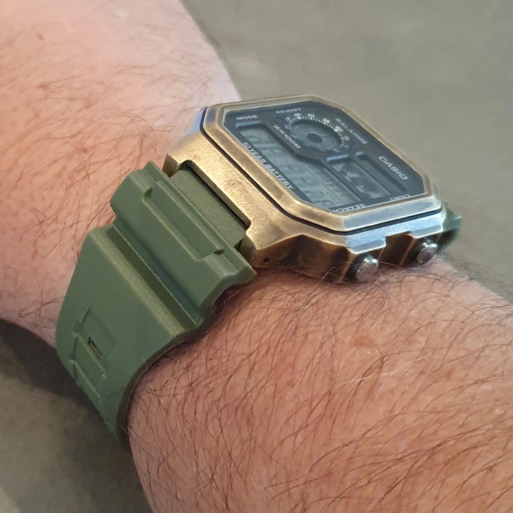Я некоторое время искала зеленый каучук или резиновый ремешок для моего бронзового AE-1200 Casio, и когда я увидел этот по такой отличной цене, я набросилась на него. Ожидания не были высоки, когда я ожидал (что было недолго), и открылся сегодня в Сиднее, хорошо упакован и с дополнительными пружинными полосками, винты и пружинный инструмент-мне понадобилось 2 минуты, и я не могу быть счастливее!