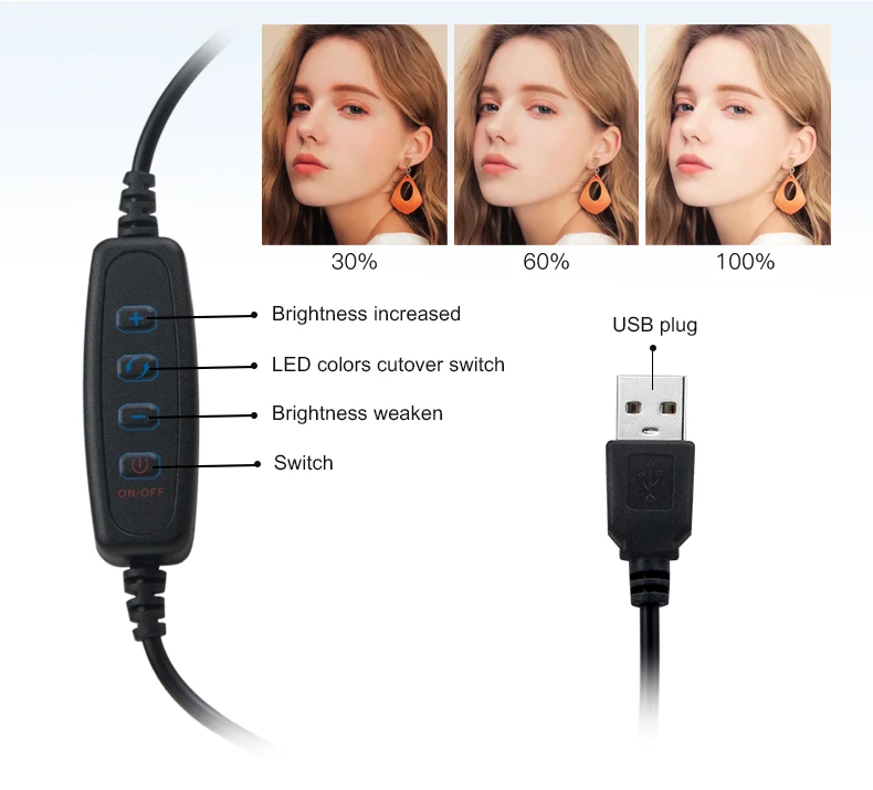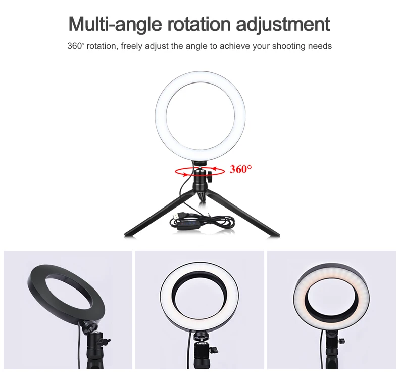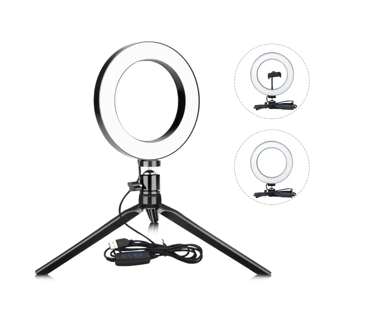 Новинка, светодиодный кольцевой светильник для селфи с регулируемой яркостью и USB, светильник для фотосъемки на мобильном телефоне со штативом для Youtobe, студийный светильник для нанесения макияжа и видеосъемки