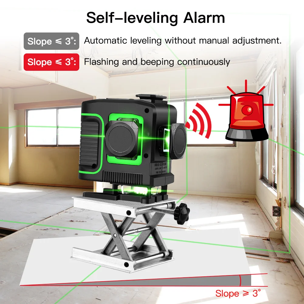 【 Все-в-одном лазерные инструменты: умная маятниковая система позволяет многофункциональному лазерному инструменту самостоятельно выровнять и указывать состояние вне уровня, пока маятник разблокирован. Как только маятник заблокирован, он переключается в ручной режим для блокировки линий для использования под любым углом.