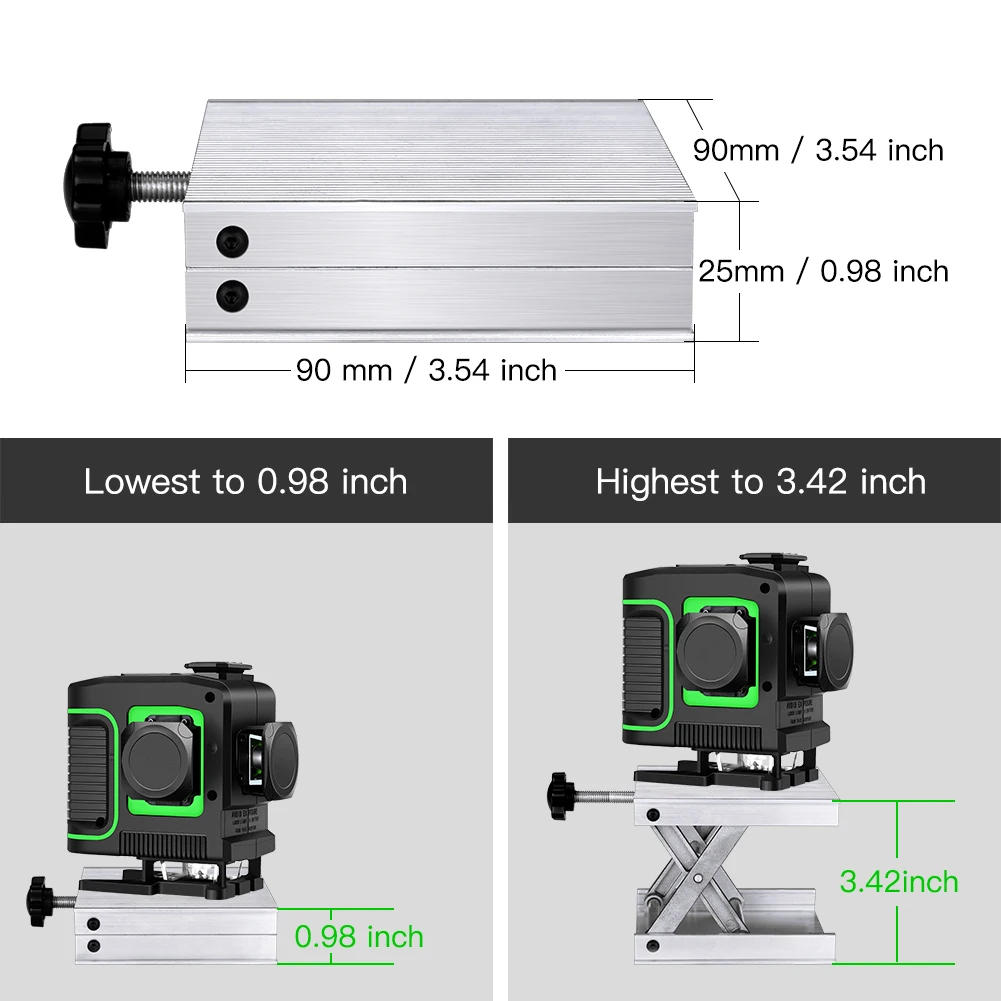 【Прочный и компактный дизайн: IP54 Водонепроницаемый и пыленепроницаемый уровень гарантирует вам хорошую работу в жестких условиях работы. Крепкий Магнитный настенный кронштейн и 1/4 "Монтажная резьба предусмотрены для удовлетворения различных методов фиксации. Оснащен подъемная платформа, высота регулируется от 0,98 до 3,42 дюймов.