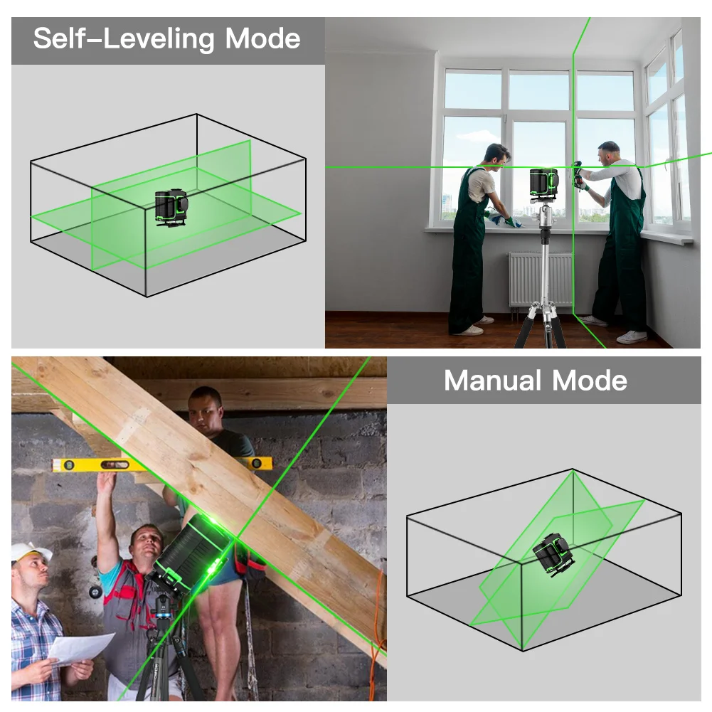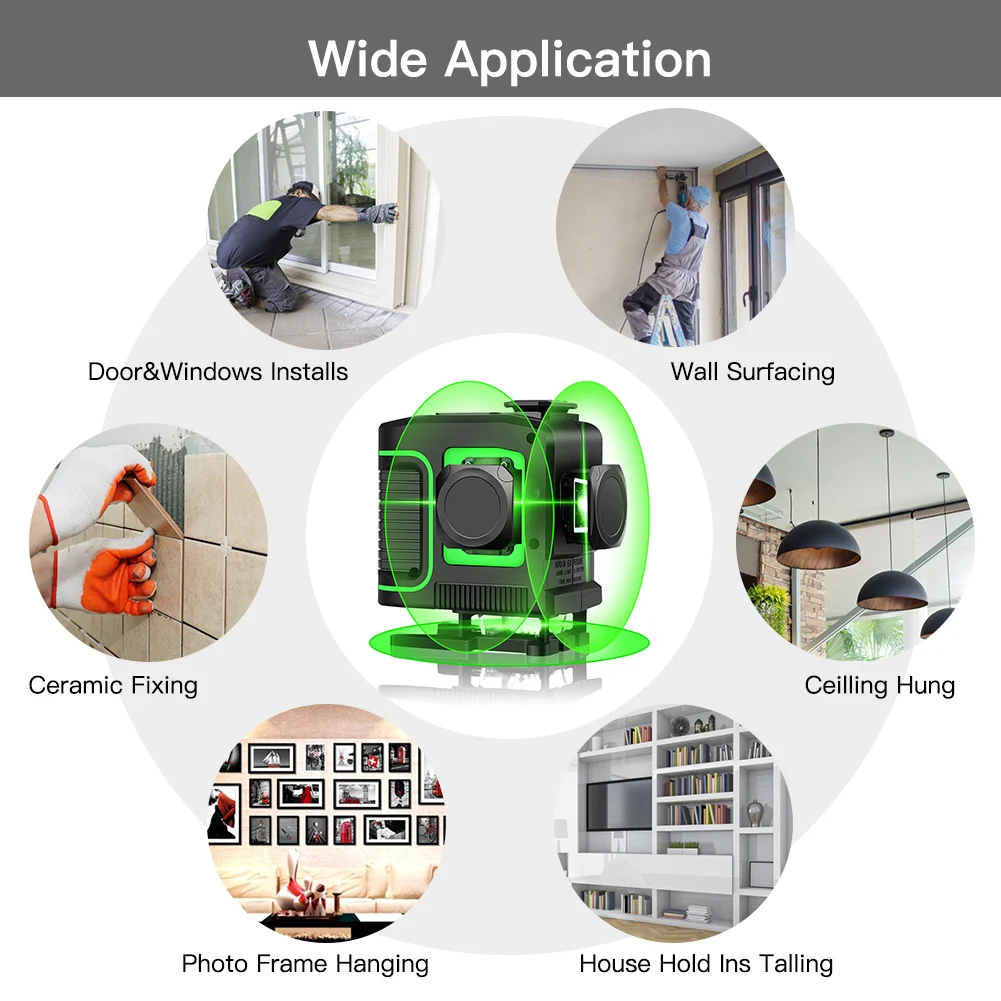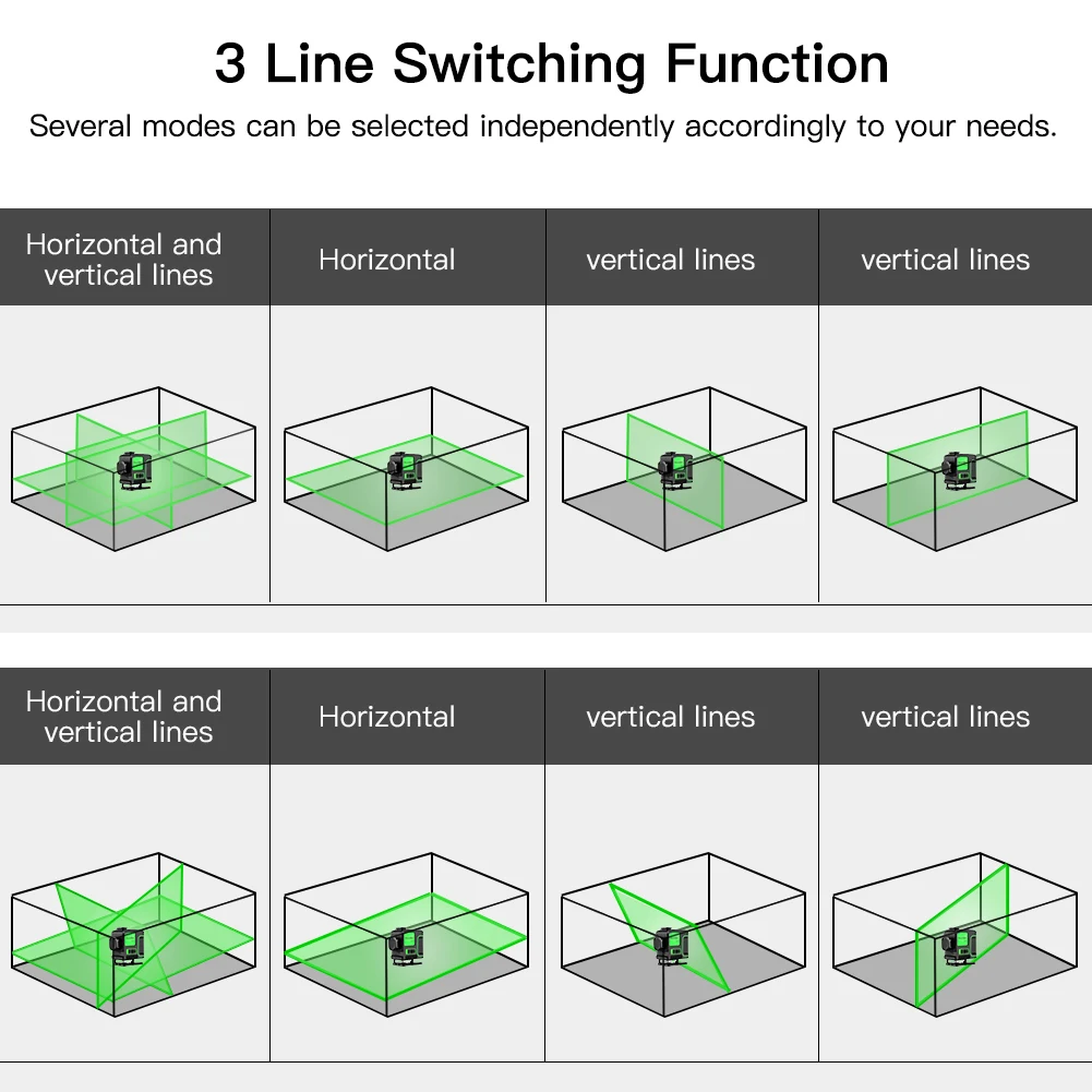 [Широкое применение]: горизонтальные/вертикальные линии могут быть выбраны индивидуально или одновременно в зависимости от приложения места работы. Вы можете переключить его с помощью пульта дистанционного управления или сенсорной кнопки. Идеально подходит для подвешивания картин, наружной конструкции, напольных покрытий, тротуарной плитки, установки фото, дверей, окон и мебели, столярных работ и т. Д.