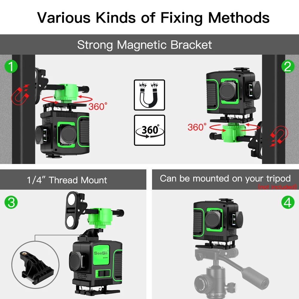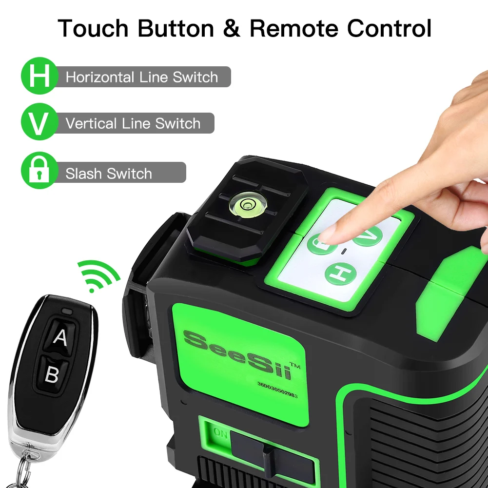 Seesii лазерный уровень, 3x360 градусов самонивелирующаяся Вертикальная Горизонтальная линия, зеленый луч поперечной линии лазера, 100 футов диапазон измерения, с магнитным кронштейном, основанием и пультом дистанционного управления для картины висит, пол, наружная конструкция