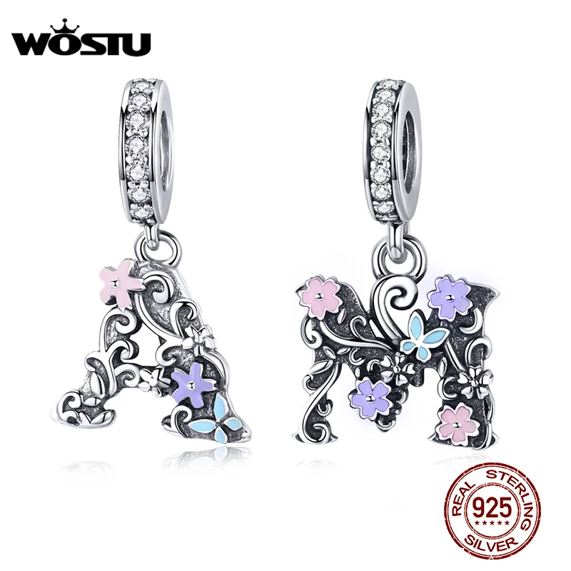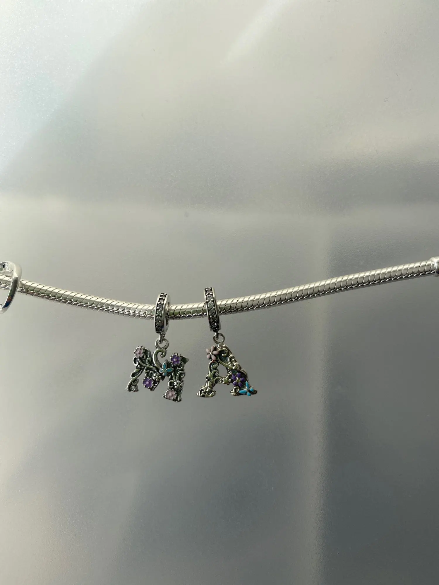 Подвеска для браслета, из серебра 925 пробы, с буквой A M