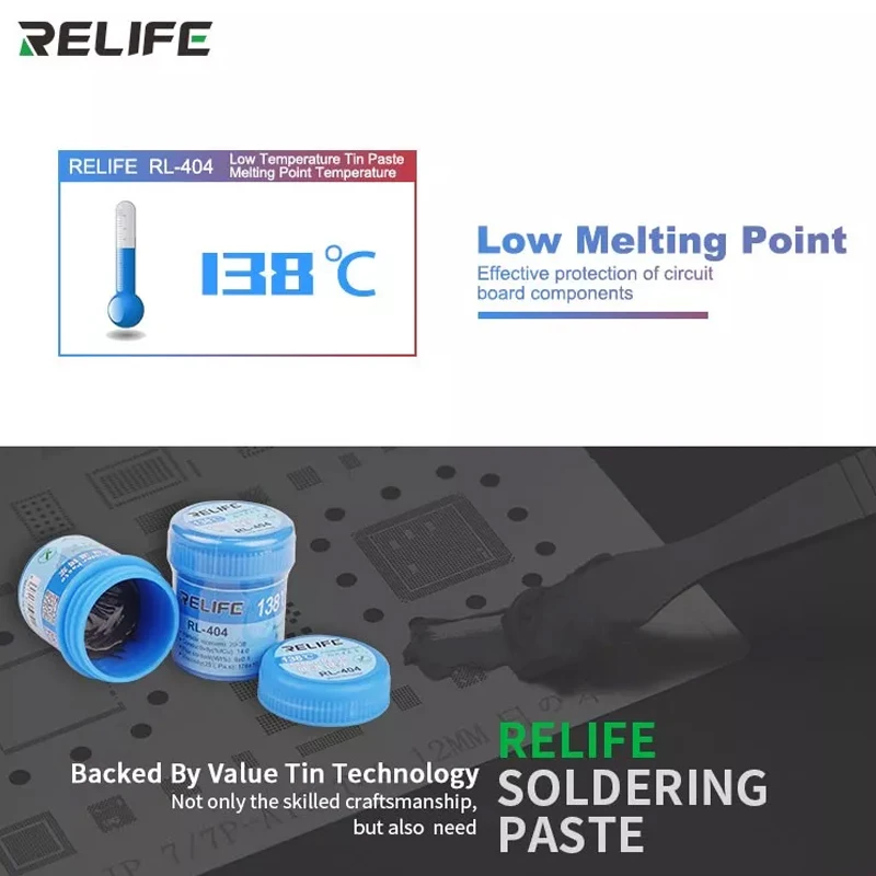 Жестяная паста RELIFE RL-404 PCB BGASMD для ремонта пластин, темпер...