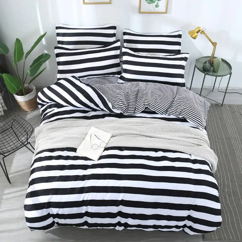 Однотонный Комплект постельного белья с принтом в полоску, пододеял...