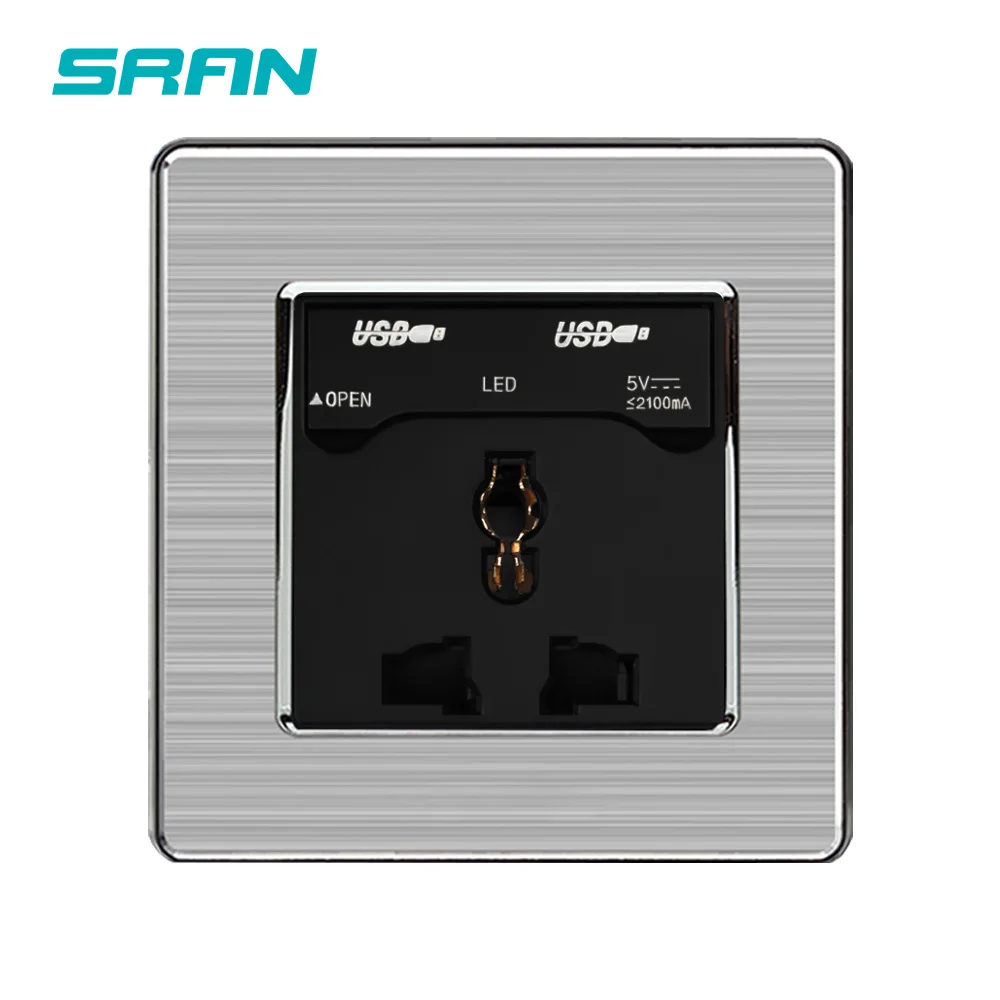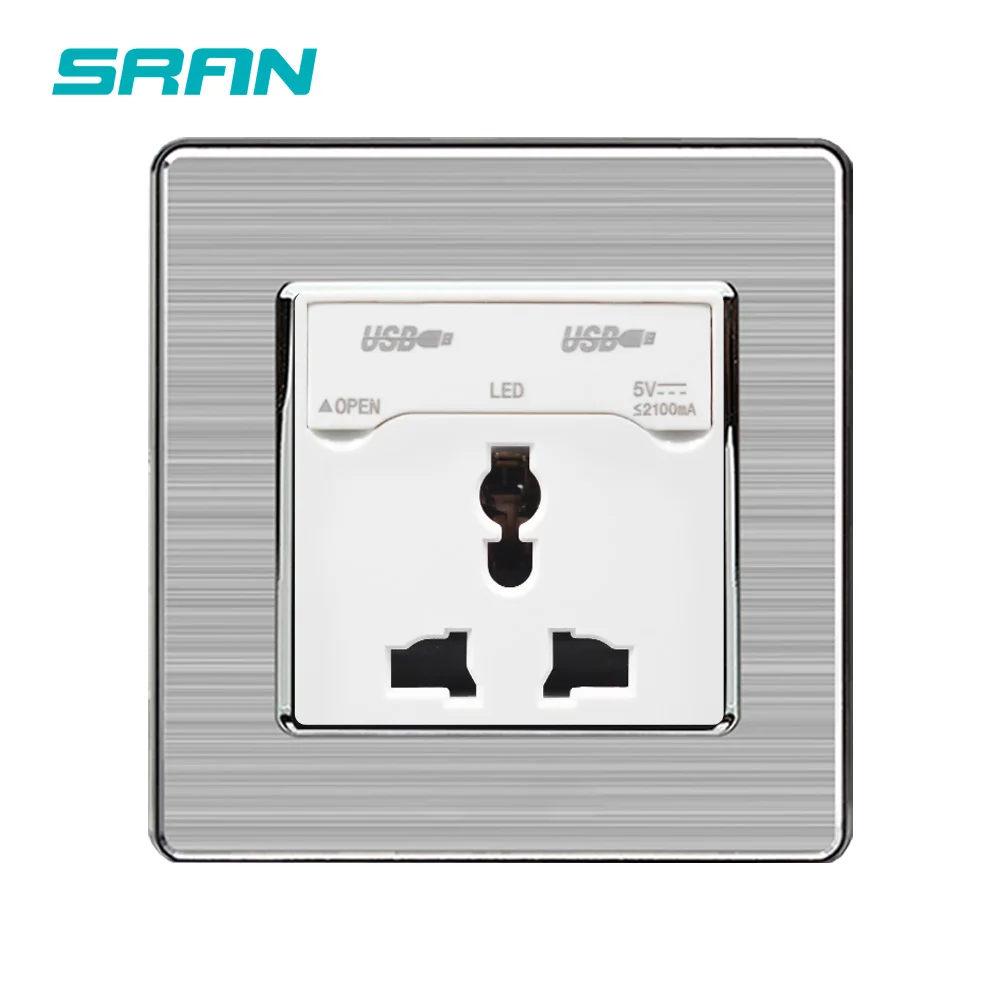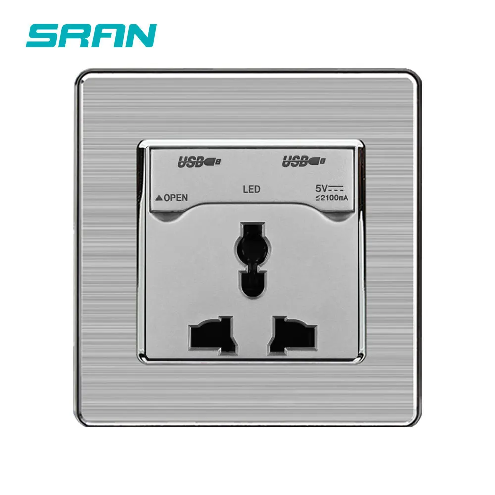 Универсальная Розетка SRAN, гнездо из нержавеющей стали с 3 отверстиями USB, 13 а, 2USB-порта, С Пылезащитным выходом, 5 В, 2,1 А, 86 х86 мм