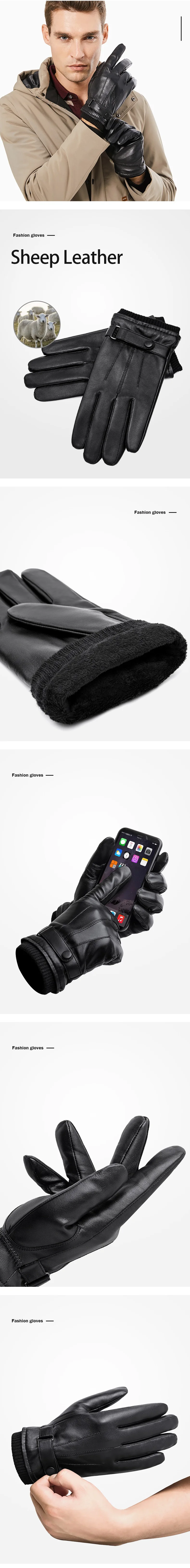 Мужские перчатки из натуральной овечьей кожи BISON DENIM, теплые черные перчатки с сенсорным экраном на осень и зиму, высокое качество, S019