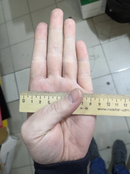 очень хорошие перчатки, быстрая доставка СДЭК ом, рука 9см х 19, обхват 24, xl размер подошёл спокойно изнутри теплые, сами по себе не громоздкие, удобные и приятные