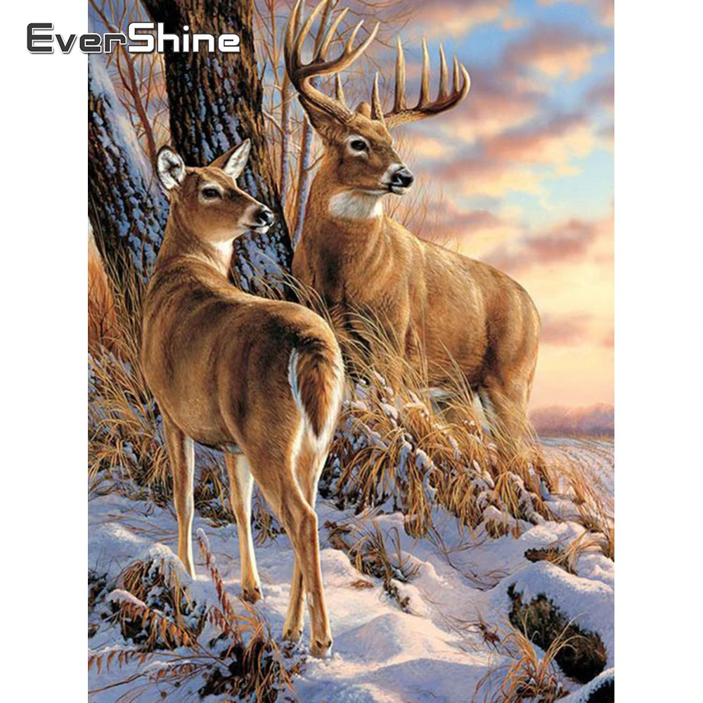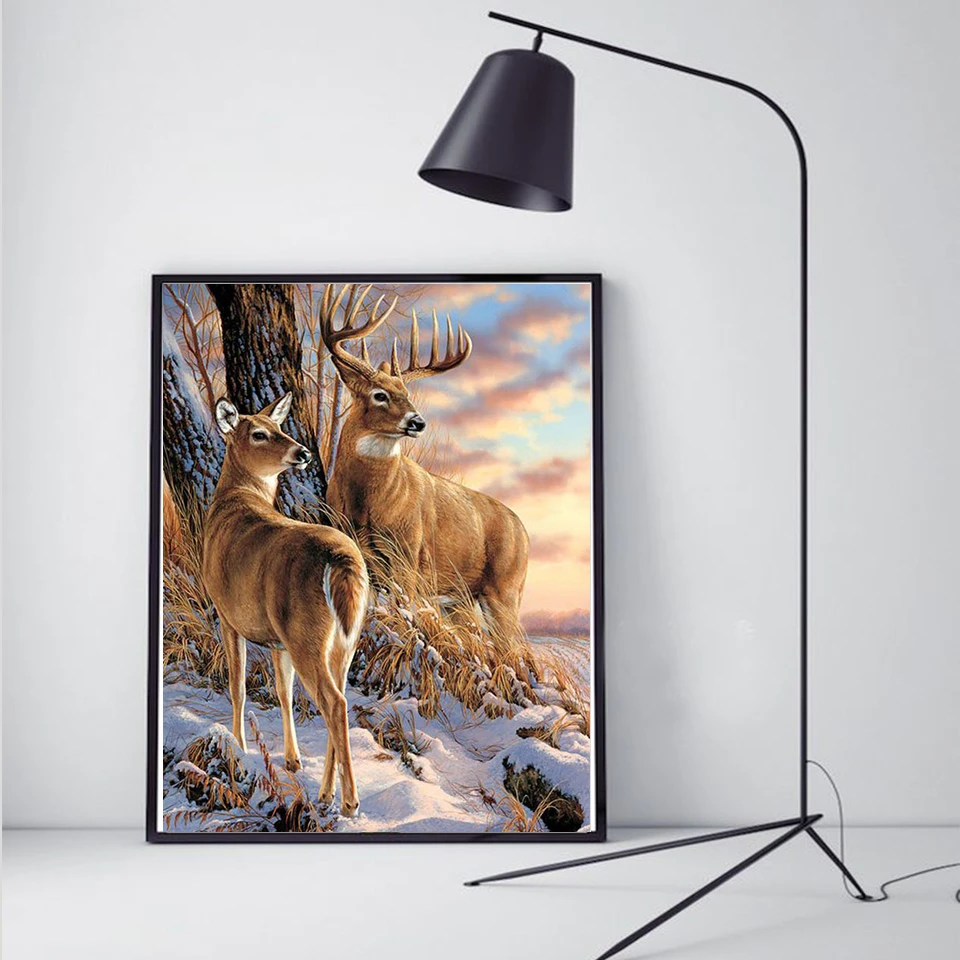 Алмазная живопись с изображением животных, оленя, Набор для вышивки крестиком, алмазная вышивка, пейзаж, зимняя Хрустальная живопись, квадратная дрель, искусство