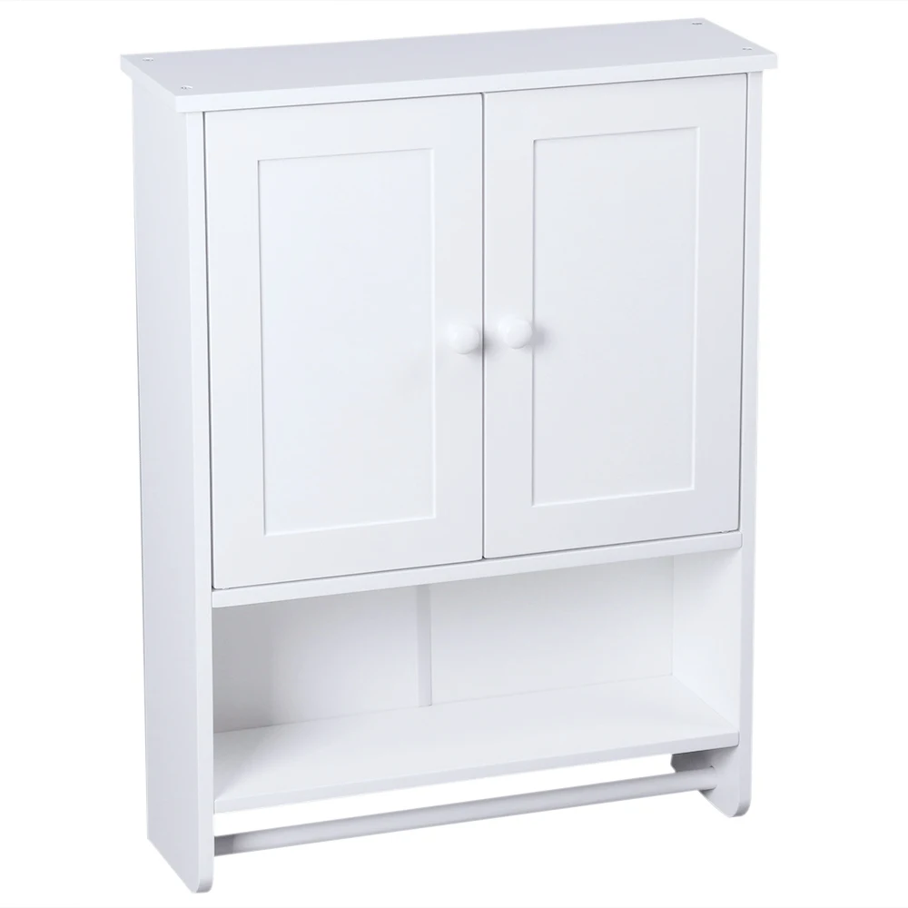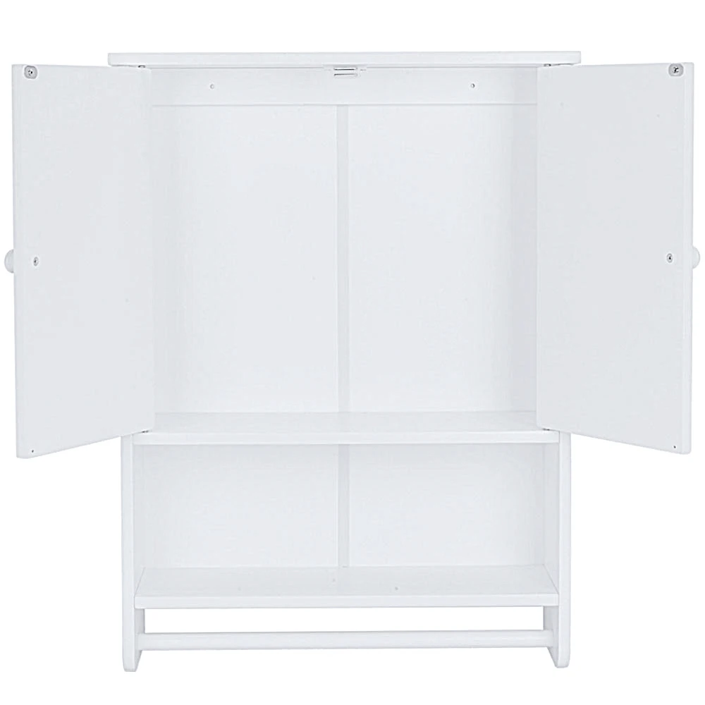 Особенности:1. Предлагаем блестящее решение для хранения в любой ванной комнате2. Открытая полка идеально подходит для декоративных аксессуаров для ванной или часто используемых элементов для ванной3. Скрытое пространство для хранения внутри двойных дверей обеспечивает конфиденциальность и доступность4. Простой дизайн и белая отделка хорошо вписываются в любой декор для ванны5. Легко собрать и установить на стену6. Изготовлен из высококачественного МДФ, прочный и долговечный