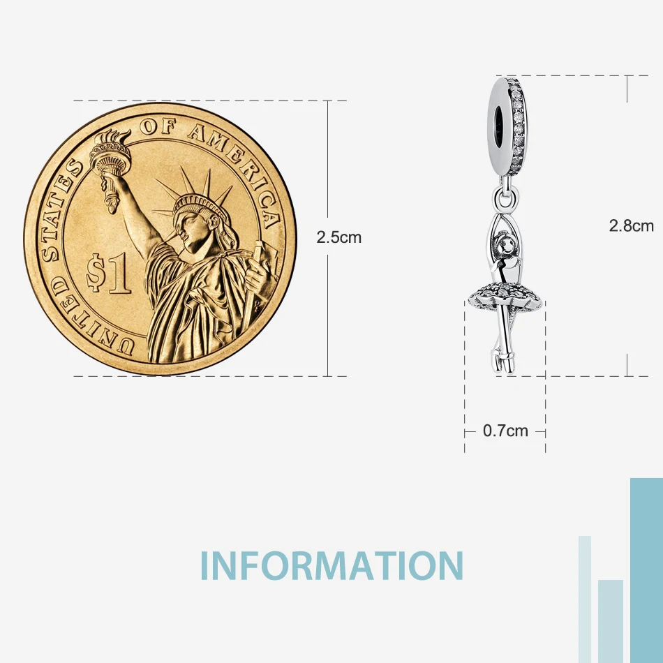Оптовая продажа уникальные очаровательные серебряные бусины 925 пробы балетное платье для танцев для девочек, соответствуют оригинальному браслету браслеты для изготовления ювелирных изделий