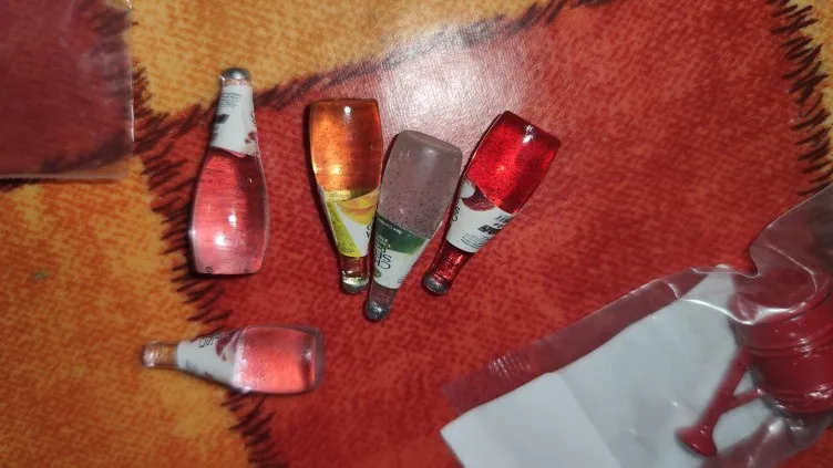 Бутылки очень милые, довольно большие и некоторые стоят на наклонной поверхности. Кроме того, как описано.