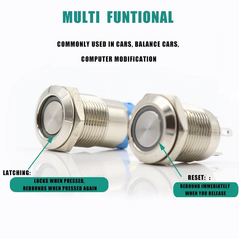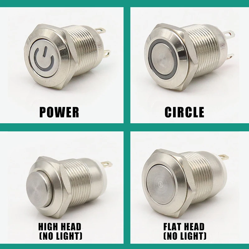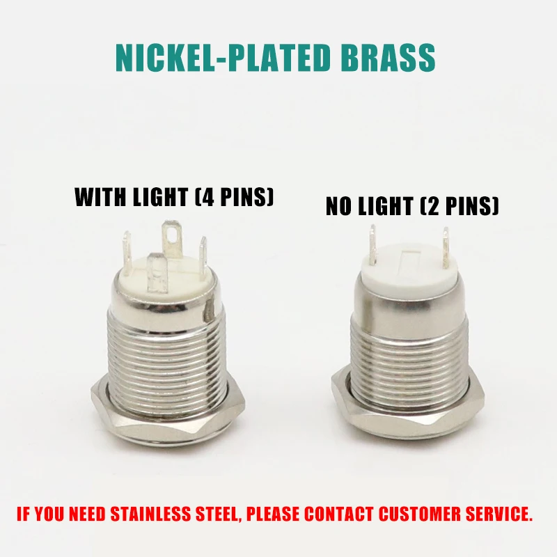 МгновеннаяБлокировка 12 мм металлическая кнопка, водонепроницаемая кнопка переключателя, 4 контакта, светодиодный светильник, ночник, плоскийкруглый, самоблокирующийся, тип сброса