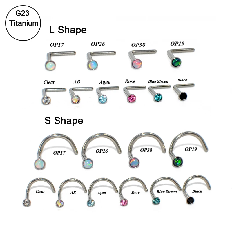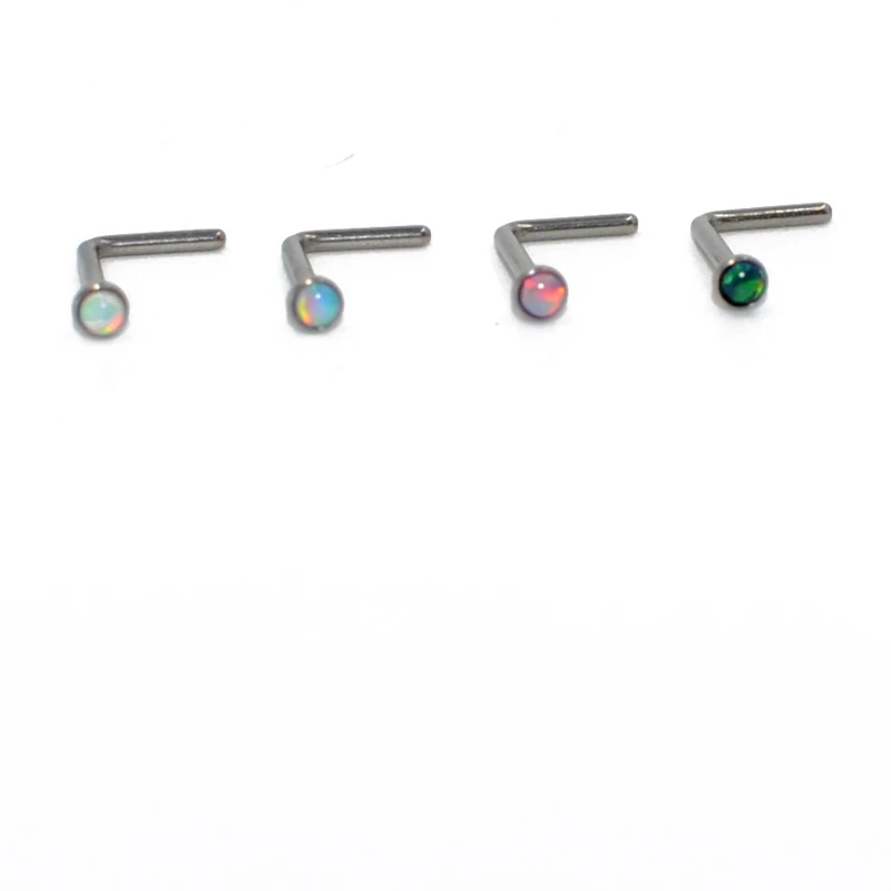 Кольцо-гвоздик CHUANCI для пирсинга носа для женщин и девушек, ювелирное изделие из титана с опалом, L-образной формы с фианитом, 2 шт.